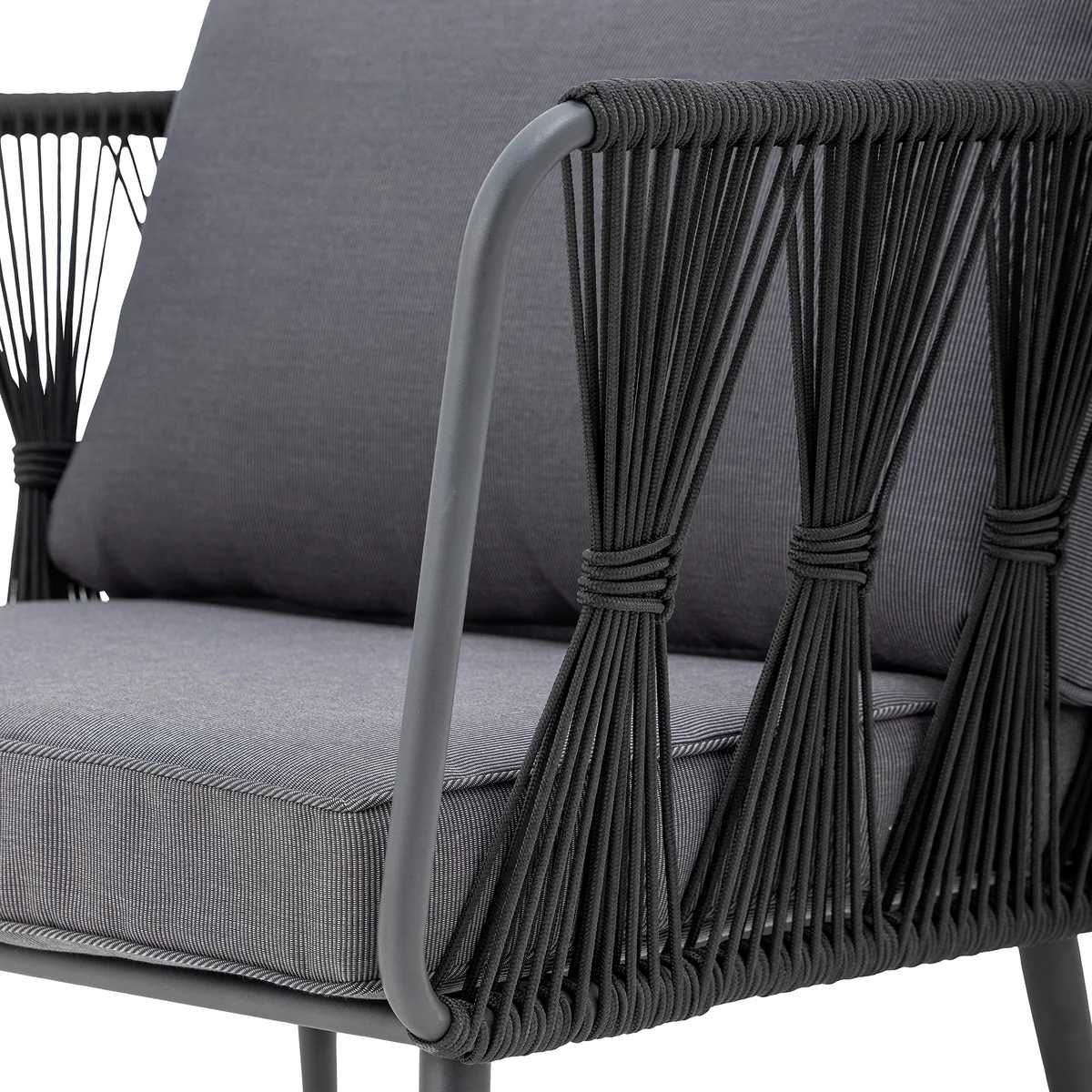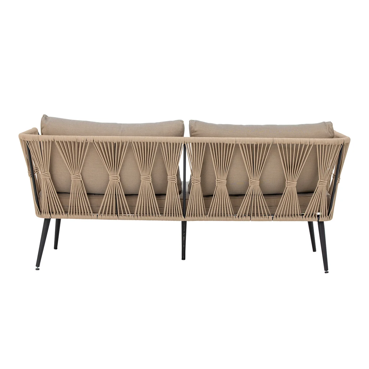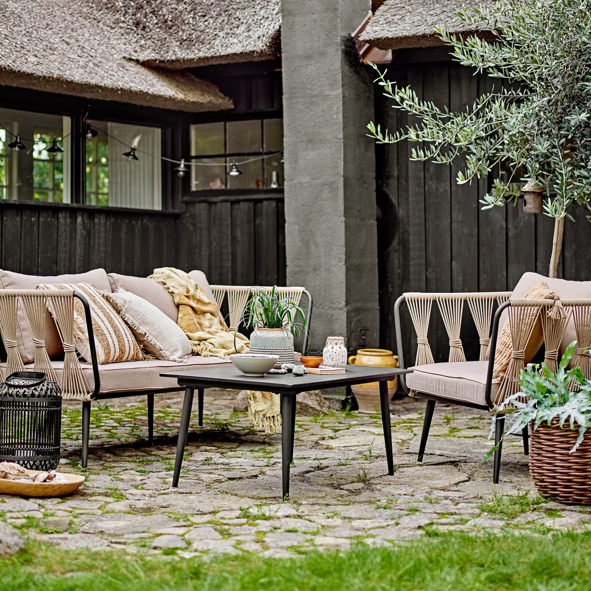 Das Pavone Outdoor Sofa von Bloomingville ist eine elegante Ergänzung für jeden Aussenbereich. Mit seinem nordischen Flair und raffinierten Details zieht es alle Blicke auf sich. Hergestellt aus schwarz pulverbeschichtetem Metall und kunstvoll gewebtem schwarzen Polyesterseil, vereint es Stil und Langlebigkeit. Die dunkelgrauen Kissenbezüge aus Polyester sind nicht nur pflegeleicht, sondern auch bei Bedarf bei 30 Grad waschbar. Damit das Sofa lange Zeit Freude bereitet, empfiehlt es sich, es vor direkter Sonneneinstrahlung zu schützen, um die Farbbeständigkeit des Materials zu erhalten. Tauchen Sie ein in luxuriösen Komfort und verbringen Sie entspannte Stunden im Freien auf dem Pavone Outdoor Sofa.