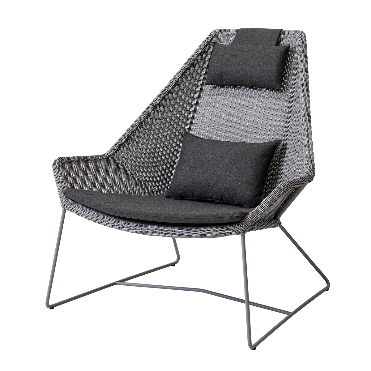 Der Breeze Highback Sessel (5469) Outdoor von Cane-line ist ein äusserst bequemer Lounge Sessel für den Aussenbereich. Er überzeugt durch seine extra hohe Rückenlehne, die umhüllende Sitzschale und die bequemen Armlehnen, die zum Relaxen, Lesen und Verweilen einladen. Der Sessel gehört zu einer Serie an modernen Outdoormöbeln, die von Strand + Hvass entworfen wurde. Das Designerduo liess sich für die Serie von der warmen Sommerbrise inspirieren.