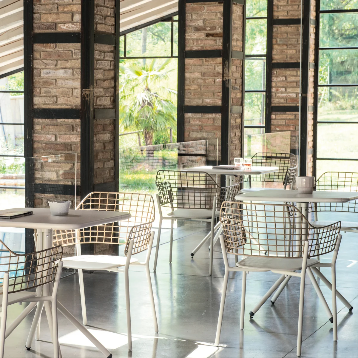 Der Lyze Armlehnstuhl von Florent Coirier für Emu für den Aussenbereich überzeugt mit einem zeitlosen Design. Der Stuhl aus einer ganzen Reihe an Gartenmöbeln sticht durch sein technisches Aussehen heraus und ist eine moderne Alternative zu anderen Outdoor-Möbeln.