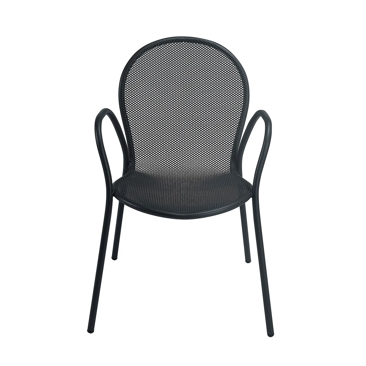 Mit seinen Waben in der Sitzfläche ist der Ronda für einen Metallstuhl erstaunlich bequem, denn die Form des Armlehnstuhls passt sich ergonomisch dem Körper an. Die Metallstruktur bricht das Licht auf effektvolle Weise und erzeugt schimmernde Licht- und Schattenspiele im Garten, auf dem Balkon und auf der Terrasse.