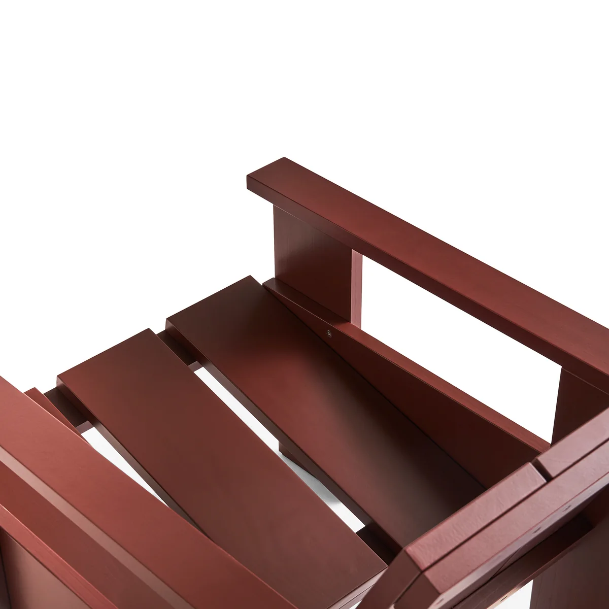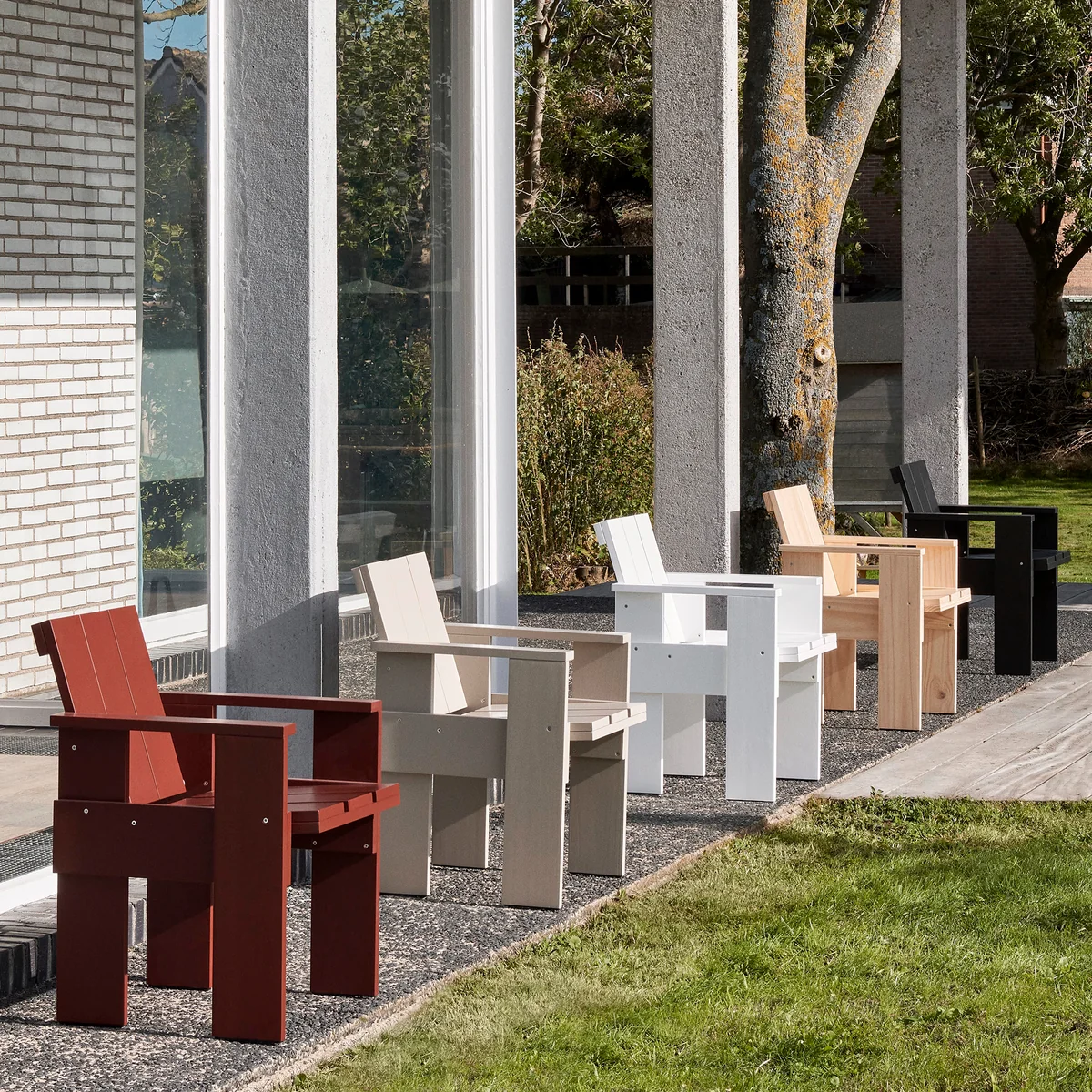Der Crate Lounge Chair aus dem Hause HAY gehört zu den Klassikern, die neu aufgelegt wurden. Die Crate Kollektion des niederländischen Architekten und Designers Gerrit Rietveld, wurde 1934 entworfen. Das Ziel war es überschüssige Holzkisten für den Transport zu nutzen. Der Crate Lounge Chair wurde mit starkem Fokus auf dem Originaldesign hergestellt und weist die gleichen, überaus präzise ausbalancierten Proportionen auf. Die transparente Konstruktion ermöglicht einen optimierten Montageprozess. Die niedrigen Elemente, die sanft abfallende Rückenlehen und die Sitzfläche mit den stützenden Armlehnen verleihen dem Stuhl seine Einfachheit. Crate Lounge Chair bietet Komfort, ohne dabei viel Platz zu beanspruchen. Er wird aus massivem Kiefernholz gefertigt und kann dank seiner Lackierung auf Wasserbasis kann der Lounge Stuhl sowohl im Innen- als auch Aussenbereich platziert werden. In unterschiedlichen Farben erhältlich.