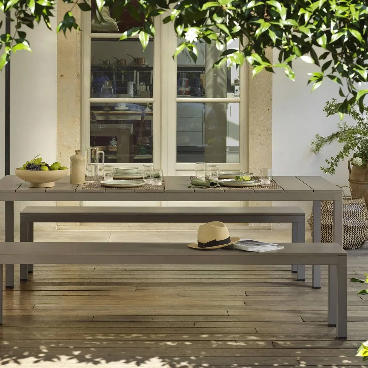 Die Rio Alu Bank von Nardi wird aus epoxiertem Aluminium hergestellt und ist, aufgrund der Materialbeschaffenheit, perfekt für den Outdoor-Gebrauch. Robust, vielseitig und mit einer geselligen Optik, ist die Rio Alu Bank eine Einladung zum Zusammensein. Sie zeichnet sich durch die sauberen Linien und die charakteristische Folge von Dauben auf der Sitzfläche aus.