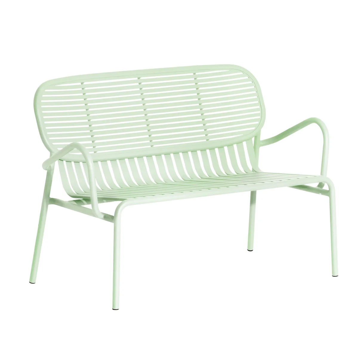 Dieses Sofa gehört zur Week-End Serie von Petite Friture, die aus einer Reihe ästhetischer und praktischer Gartenmöbel besteht. Entworfen von dem Designstudio BrichetZiegler zeichnen sich alle Produkte der Serie durch eine hohe Wetterfestigkeit und ihre raffinierte Lamellenstruktur aus.