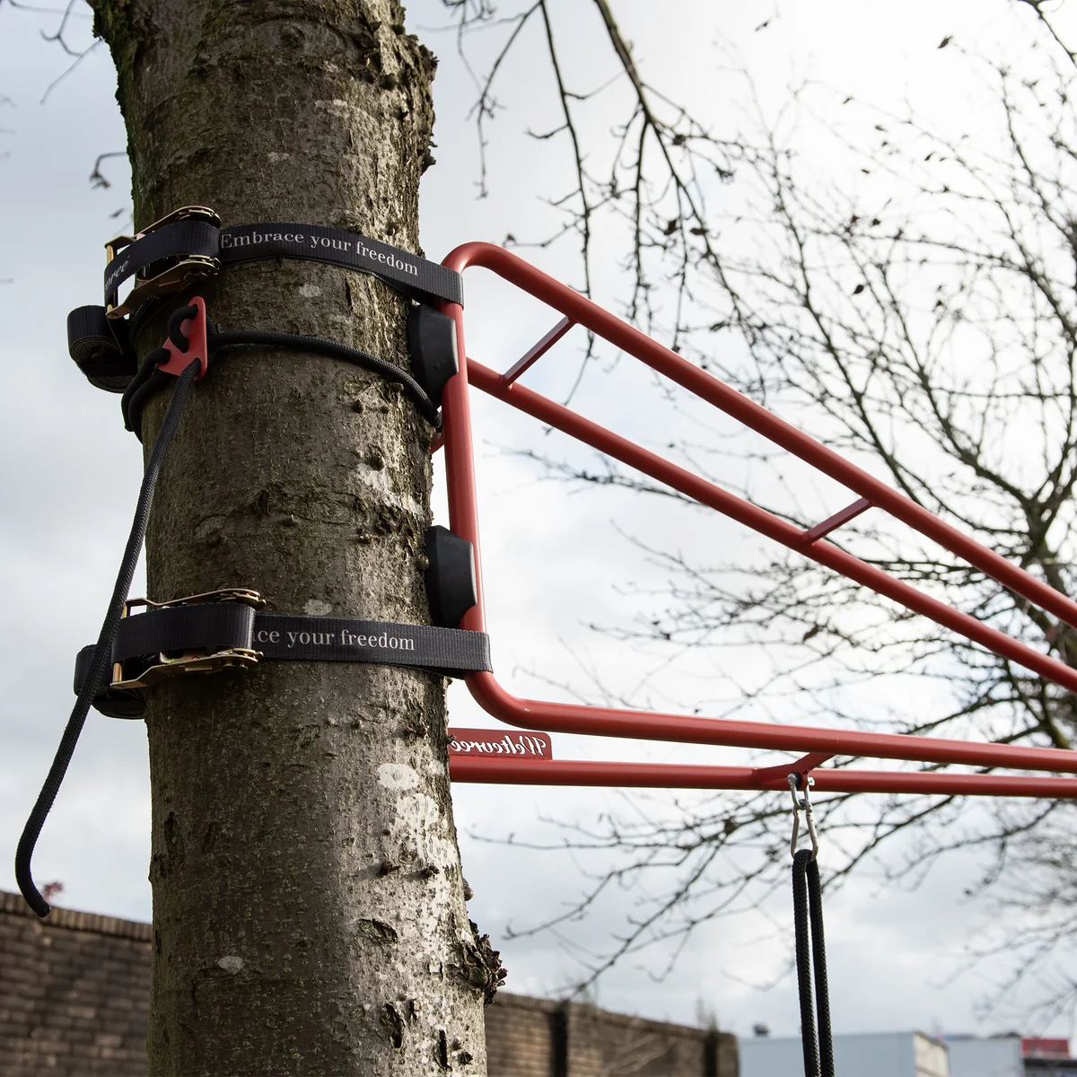 Mit der Swing Schaukel von Weltevree lässt sich an jedem beliebigen Ort im Freien ein Spielplatz für Gross und Klein erschaffen. Dazu muss die Stahlvorrichtung mithilfe der Spannbänder einfach an einem Baum oder Pfahl befestigt werden und schon geht der Schaukel-Spass los!
