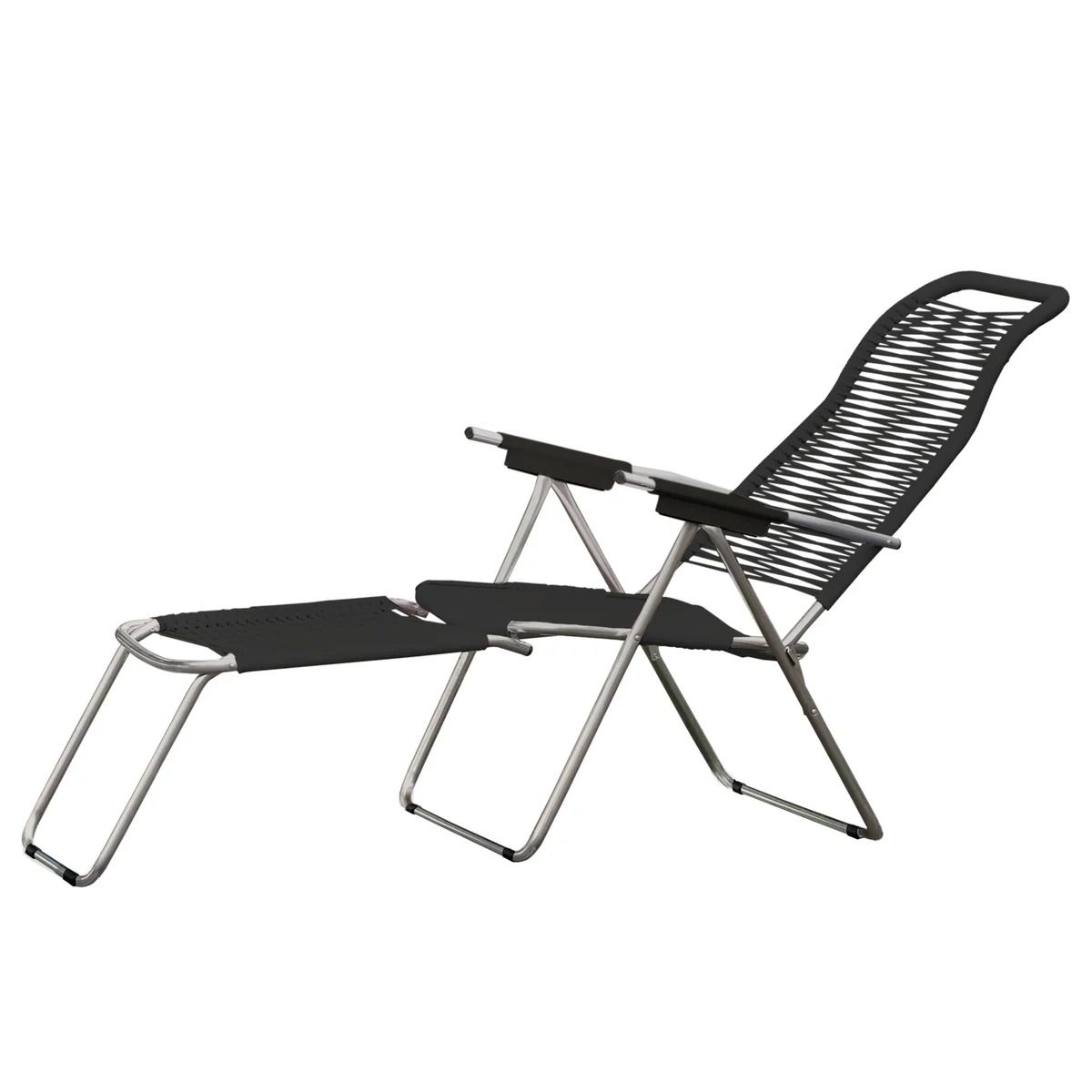 Ergonomische Seiten und Armlehnen sorgen für höchsten Liegekomfort und laden zum Verweilen und Relaxen im eigenen Garten oder auf der heimischen Terrasse ein. Dabei ist der Liegestuhl mit einer grosszügigen Liegefläche ausgestattet und bleibt gleichzeitig kompakt, denn die Fussstütze lässt sich nach Belieben auch unter die Sitzfläche klappen. Mit hochgeklappter Rückseite wird die Liege so zum bequemen Sessel. Im Allgemeinen ist der Liegestuhl in fünf Stufen verstellbar.