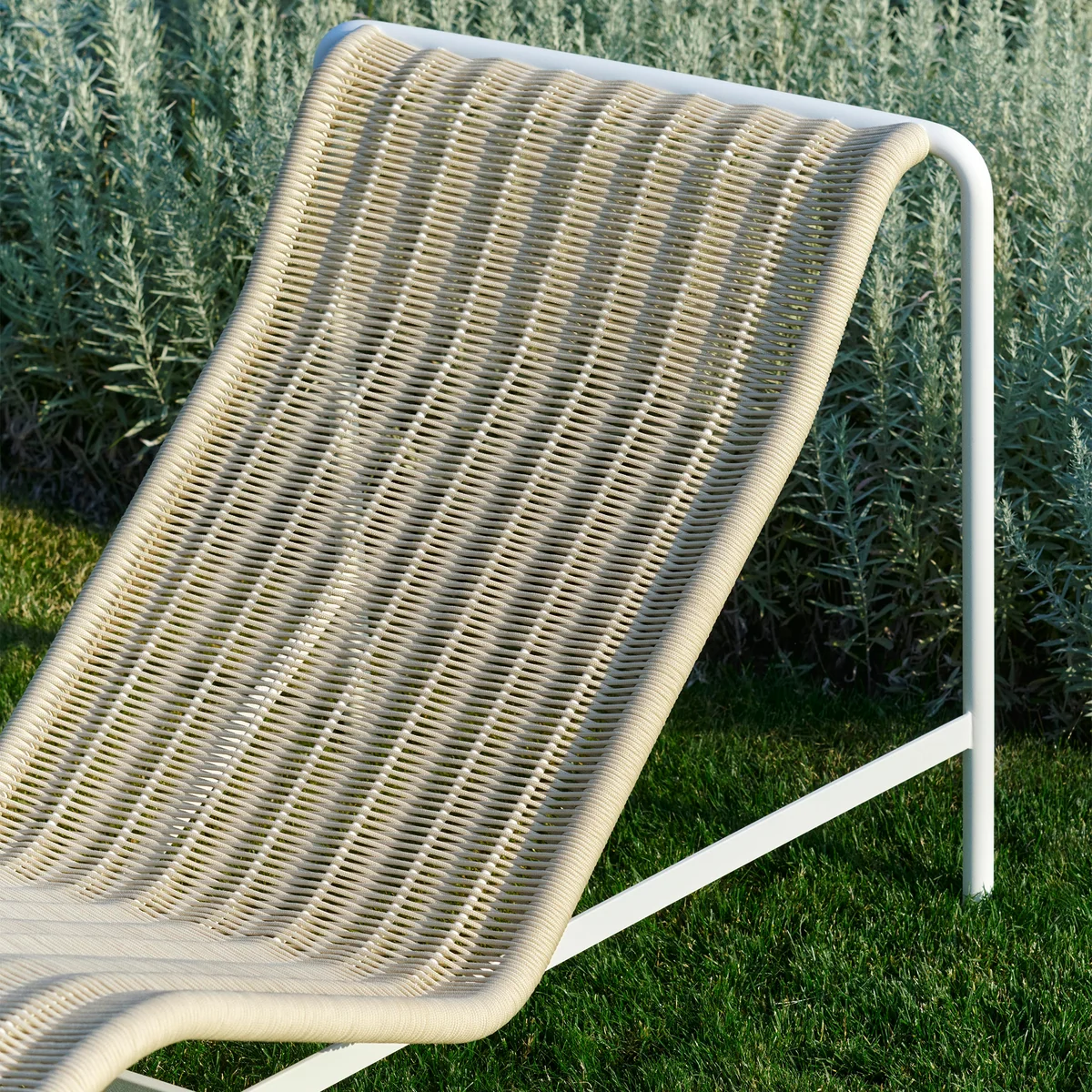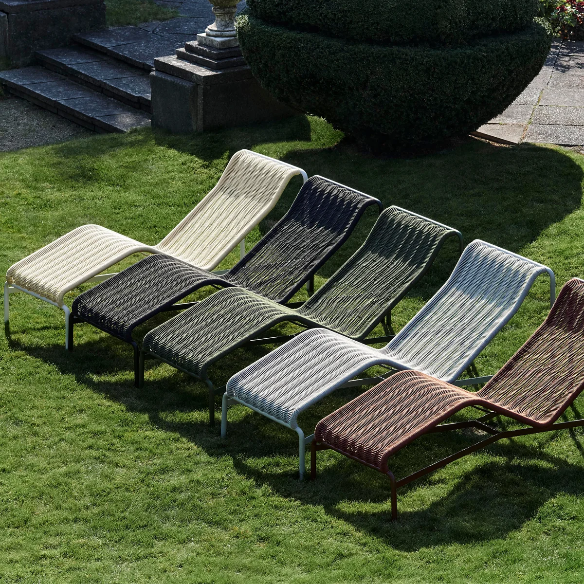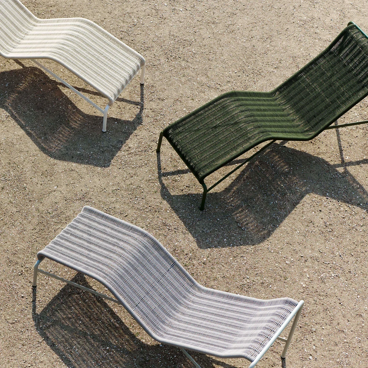 Die Palissade Cord Chaise Longue von HAY verbindet die markante, symmetrische Formensprache der Palissade-Kollektion mit einem weicheren und einladenden Erscheinungsbild. Der pulverbeschichtete Stahlrahmen gewährleistet Stabilität und Langlebigkeit, während die handgeflochtene Liegefläche aus recyceltem Polyester-Cord in abgestimmter Farbgebung für einen bequemen, entspannenden Sitzkomfort sorgt. Dank ihrer zeitlosen Ästhetik und einer vielseitigen Farbpalette fügt sich die Liege mühelos in unterschiedlichste Outdoor-Bereiche ein – von Cafés und Parks bis hin zu Gärten, Terrassen und Balkonen. So entsteht ein stilvoller und zugleich strapazierfähiger Rückzugsort für den Aussenbereich.