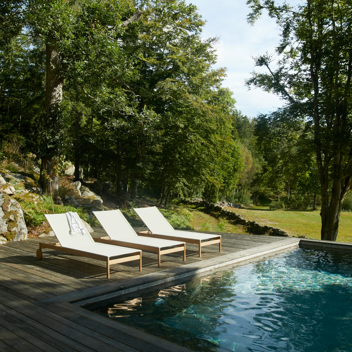 Die Pelagus Sonnenliege von Skagerak ist für pure Entspannung und ein ästhetisches Vergnügen bestimmt. Die Sonnenliege besticht nicht nur mit ihrem unverwechselbaren, gleichzeitig jedoch auch dezenten Design! Sie ist zudem äusserst bequem und kann flexibel in fünf Positionen eingestellt werden. Sie haben die Wahl - Liegen oder Sitzen? Der ausdrucksstarke und doch schlichte Holzrahmen aus Teakholz macht es leicht, der Sonne zu folgen und die Liege dementsprechend umzustellen. Der wetterfeste Sitz aus Sling-Stoff setzt mit seiner Leichtigkeit einen modernen Akzent.