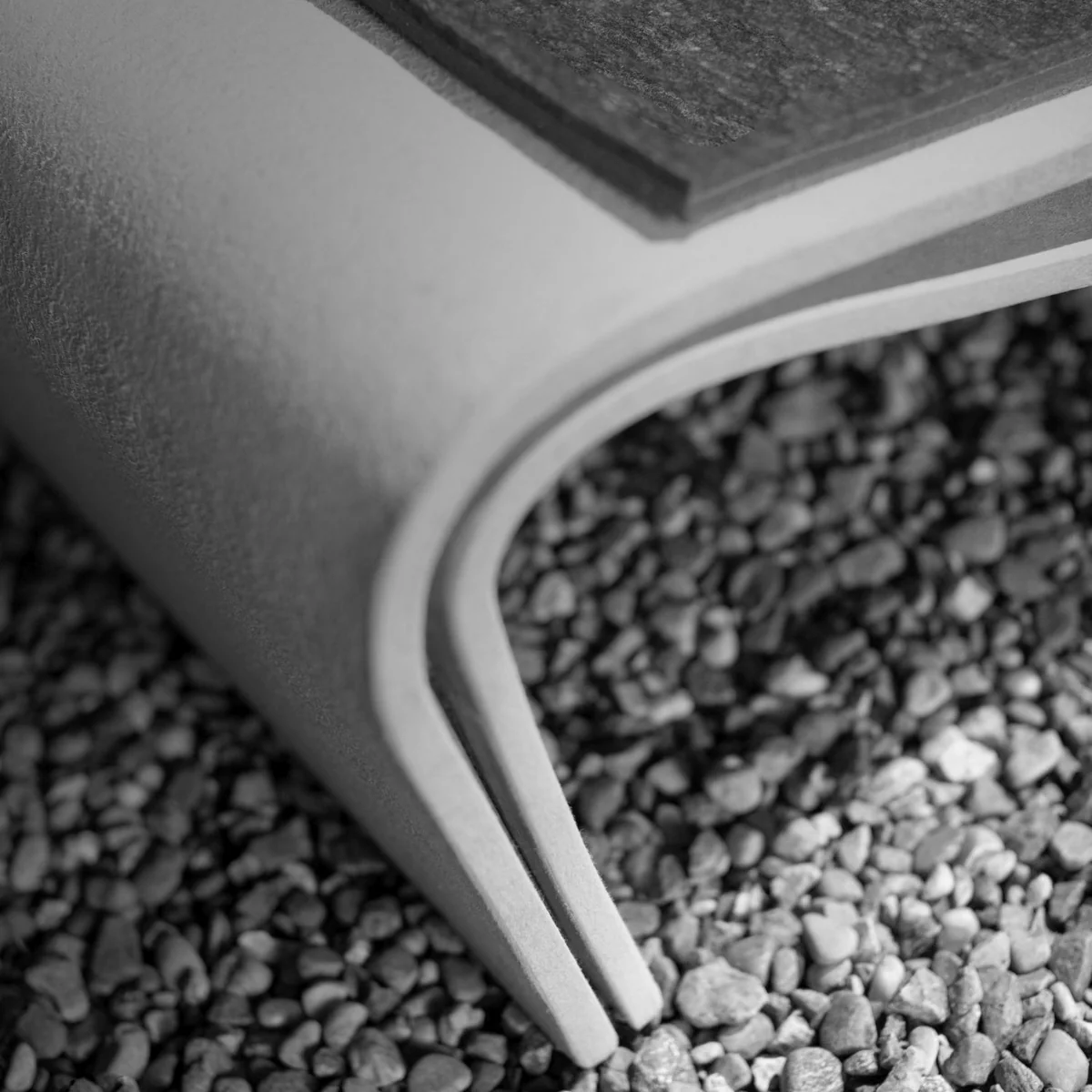 Der Sponeck Outdoor Sessel von Eternit verbindet feste Werkstoffe mit geschwungenen Linien. Er besteht aus zwei dünnen, gebogenen Eternit-Platten, die durch ihren Verbund ein statisches System schaffen. Eternit ist absolut strapazierfähig und komplett aus Faserzement gefertigt. Es besteht aus den natürlichen Stoffen Zement, Kalksteinmehl, Fasern, Luft und Wasser, ist zu 100% recycelbar und selbstverständlich asbestfrei.