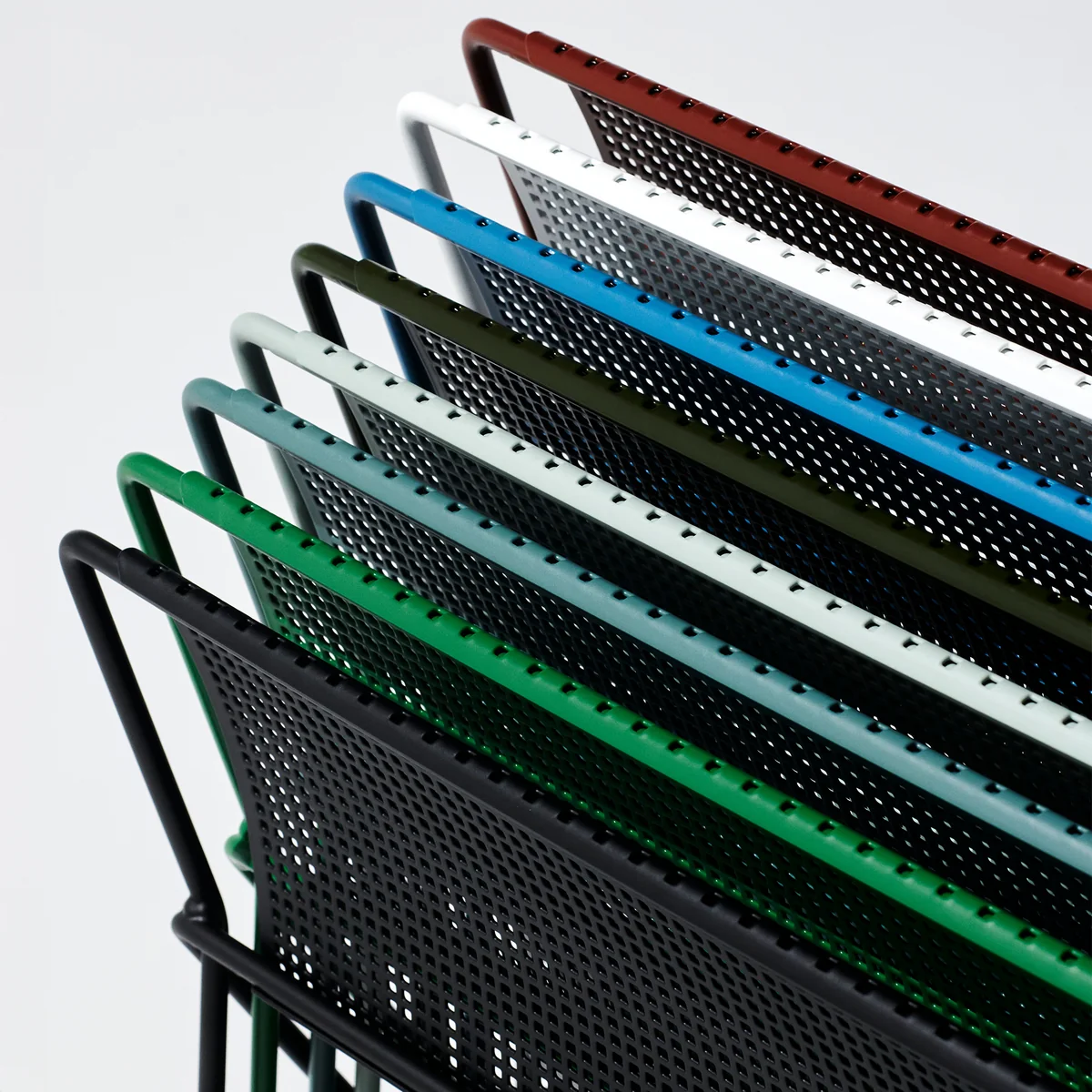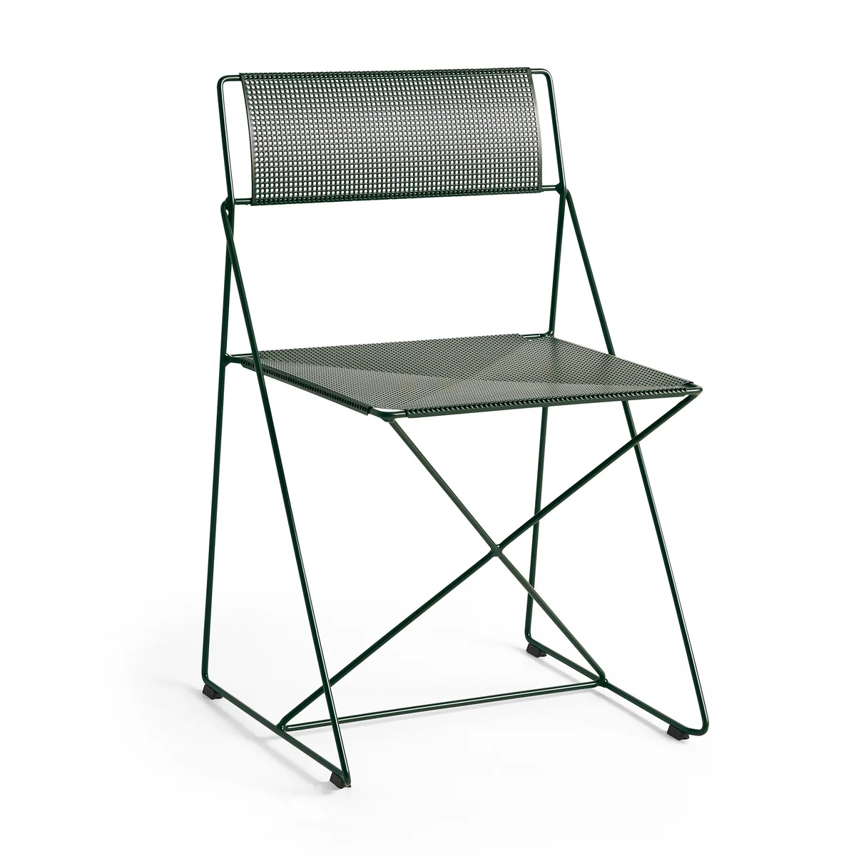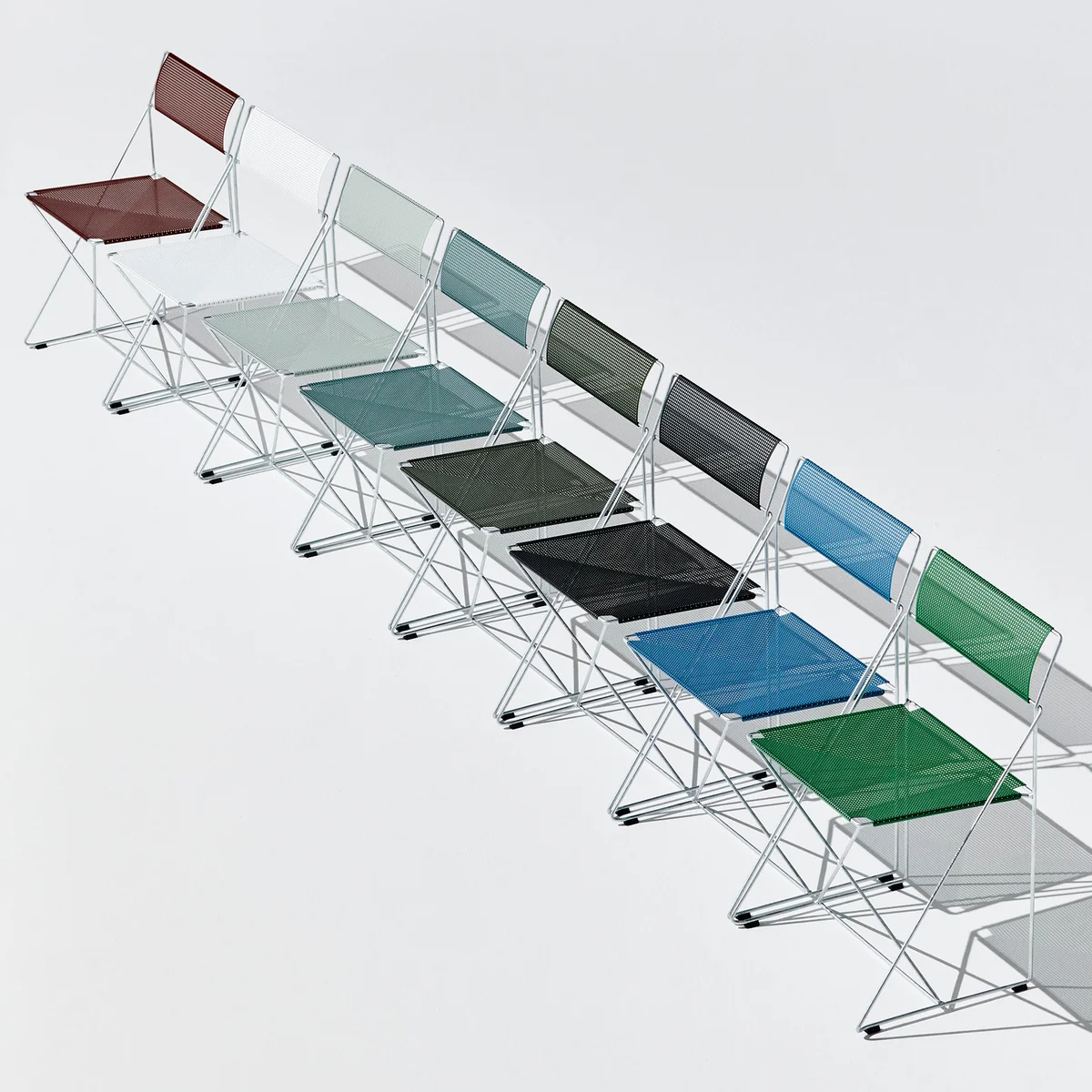 Der X-Line Outdoor Stuhl von HAY, entworfen von Niels Jørgen Haugesen in den späten 1970er-Jahren, ist ein zeitloser Klassiker mit modernem Design. Gefertigt aus dünnem Metalldraht, verbindet der Stuhl industriellen Charme mit präziser Stahlkonstruktion und ist ein herausragendes Beispiel für die High-Tech-Bewegung der 70er-Jahre.