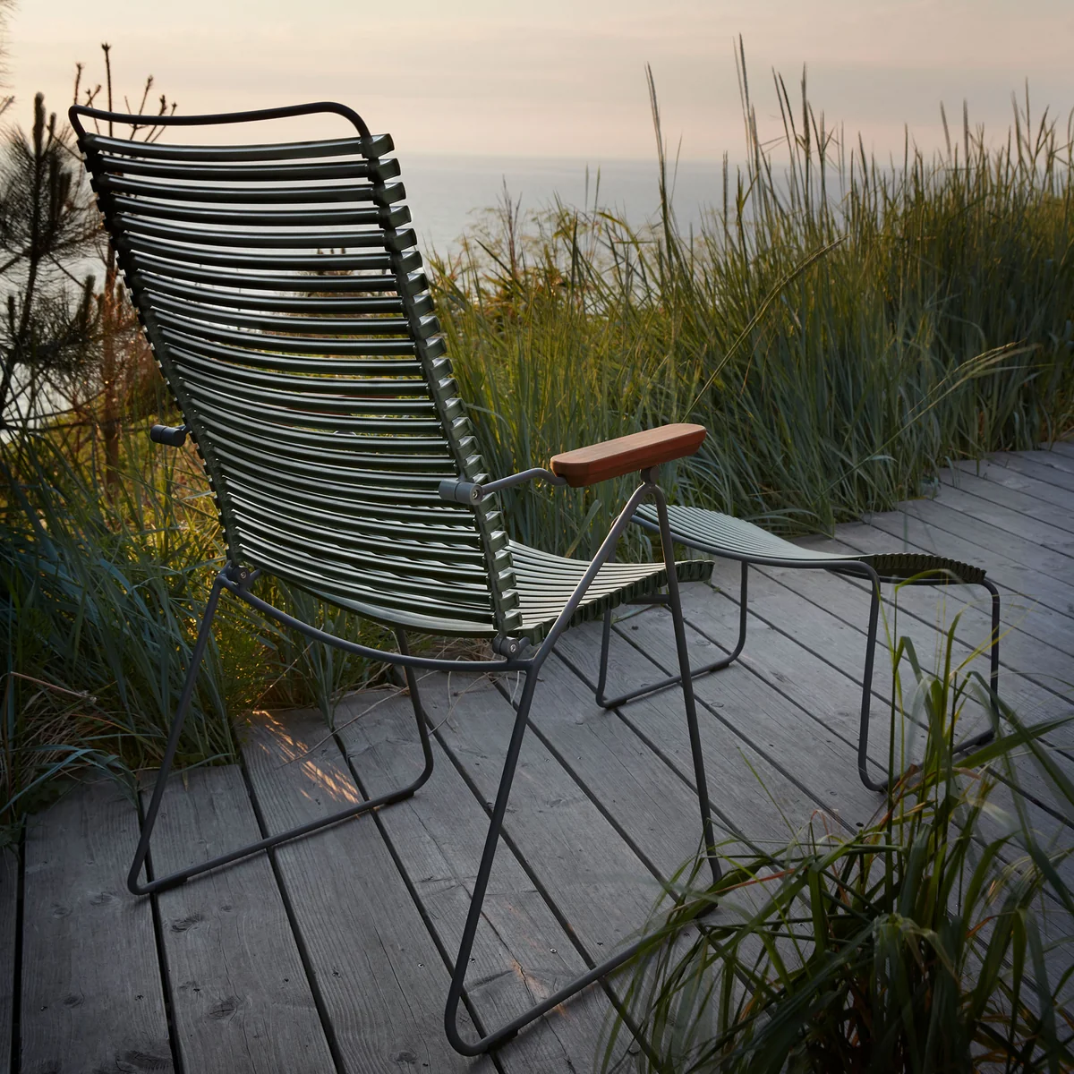 Der CLICK Position Outdoor Armlehnstuhl von HOUE ist für alle gemacht, die einfach bequem sitzen möchten. Mit seiner verstellbaren Rückenlehne können Sie sich zurücklehnen, um zu entspannen, oder einen weiten Überblick geniessen – ganz nach Ihren individuellen Bedürfnissen. Die ergonomisch gestalteten Armlehnen unterstützen eine angenehme Sitzhaltung, während die robuste, wetterfeste Konstruktion dafür sorgt, dass der Stuhl auch im Freien langlebig und pflegeleicht bleibt.