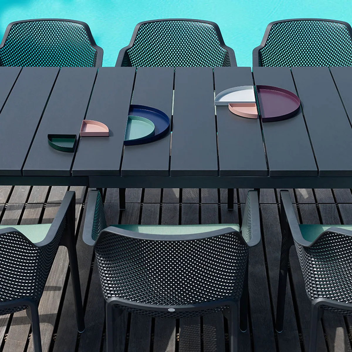 Erhältlich ist der von Raffaello Galiotto entworfene Net Armlehnstuhl in verschiedenen Farben mit Matt-Effekt, die sich hervorragend untereinander sowie mit weiteren Gartenmöbeln von Nardi kombinieren lassen. Passende Auflagekissen sind separat erhältlich.