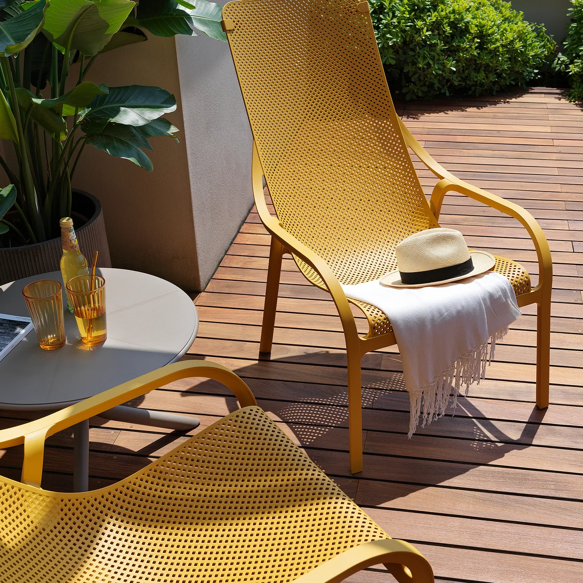 Der Loungestuhl für den Aussenbereich wird aus voll durchgefärbtem UV-beständigem fiberglass-Polypropylen mit matt Effekt hergestellt. Der Net Lounge ist stapelbar und mit rutschfesten Fusskappen und Klammern ausgestattet, um das Strandtuch zu befestigen.
