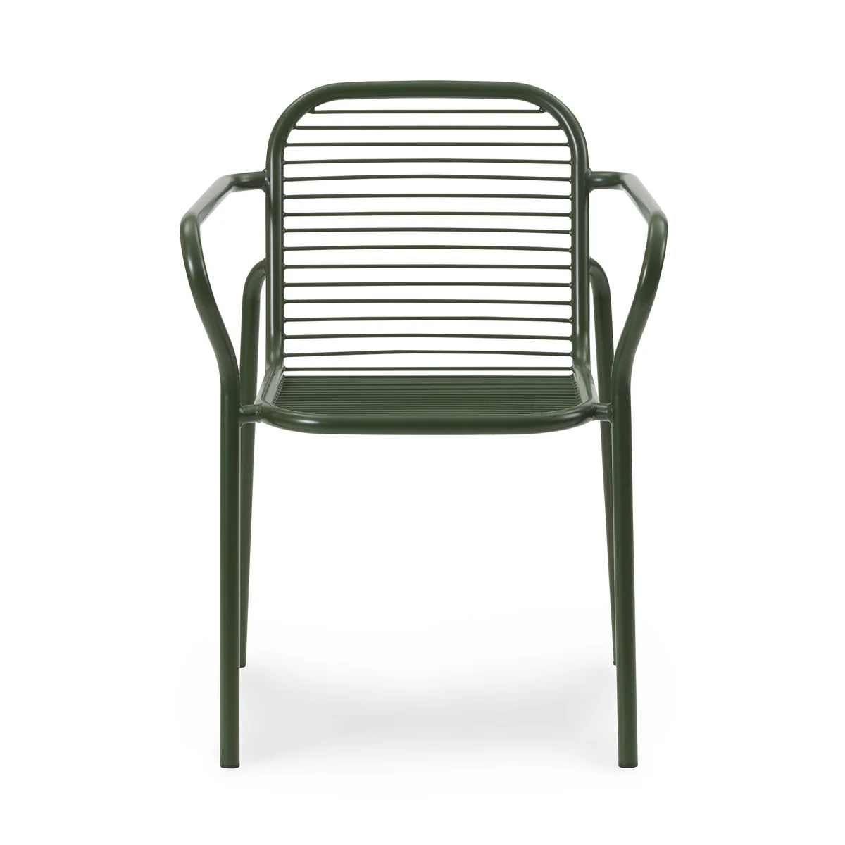 Der Vig Outdoor Armlehnstuhl von Normann Copenhagen. Die Vig Kollektion präsentiert Outdoor-Möbel, die sich durch ein zeitloses und funktionales Design auszeichnen und aus doppelt pulverbeschichtetem Stahl gefertigt sind, um eine lange Lebensdauer im Freien zu gewährleisten. Die umfassende Vig Kollektion umfasst stapelbare Aussenmöbel wie Armlehnstühle, klassische Stühle und Bänke in verschiedenen Grössen.