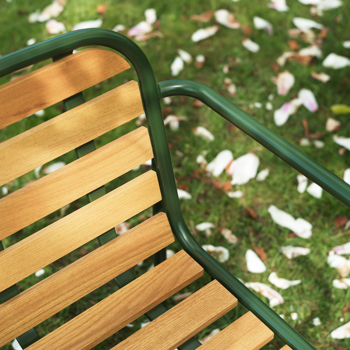 Die Möbel der Kollektion sind aus pulverbeschichtetem Stahl gefertigt, welches für seine aussergewöhnliche Langlebigkeit und Wetterbeständigkeit bekannt ist. Die von Simon Legald im Jahr 2023 entworfene Vig Serie fügt sich nahtlos in jede Umgebung im Freien ein und wurde sorgfältig für eine langfristige Nutzung gefertigt.