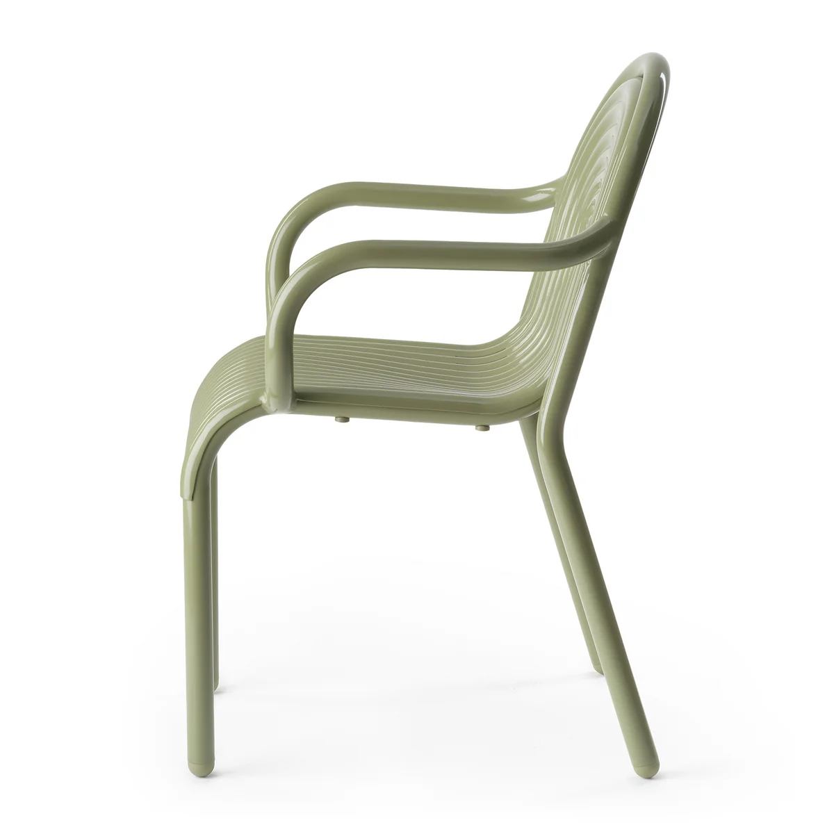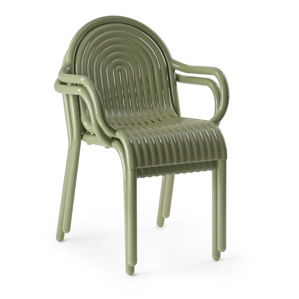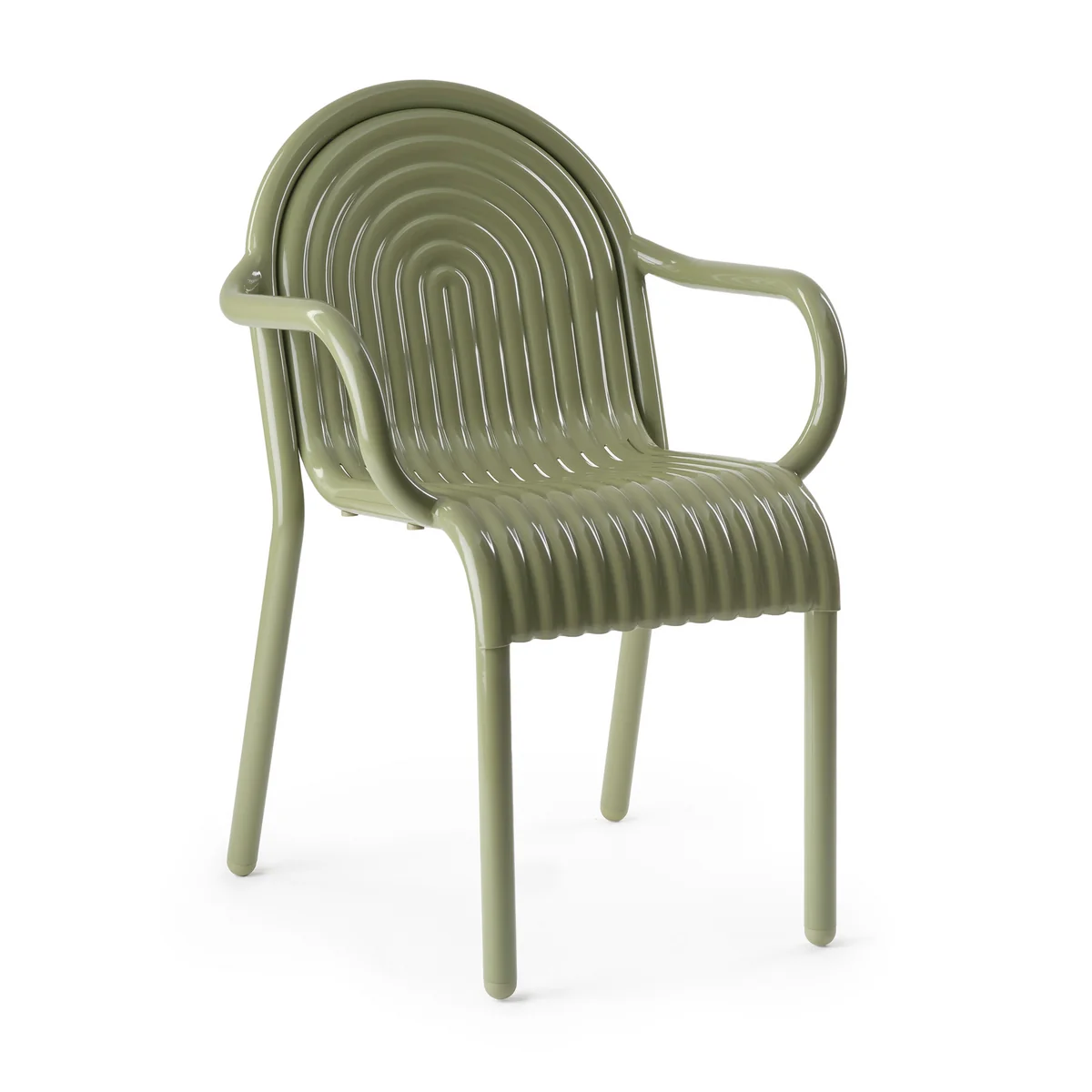 Der Groove Gartenarmlehnstuhl von Tom Dixon gehört zur ersten Outdoor-Kollektion und überzeugt durch markante, im Art-déco-Stil erhobene Linien. Der Stuhl wird aus hochwertigem Aluminium gefertigt und mittels moderner Fertigungstechniken hergestellt, was ihm eine aussergewöhnliche Langlebigkeit verleiht. Die pulverbeschichtete Oberfläche ist lösungsmittelfrei und VOC-frei, wodurch der Stuhl ideal für den Ausseneinsatz geeignet ist. Die Groove -Kollektion wurde über ein Jahrzehnt hinweg optimiert und bietet flexible, stapelbare Designs für eine effiziente Lagerung. Erhältlich in den Farbtönen moosgrün und putty.