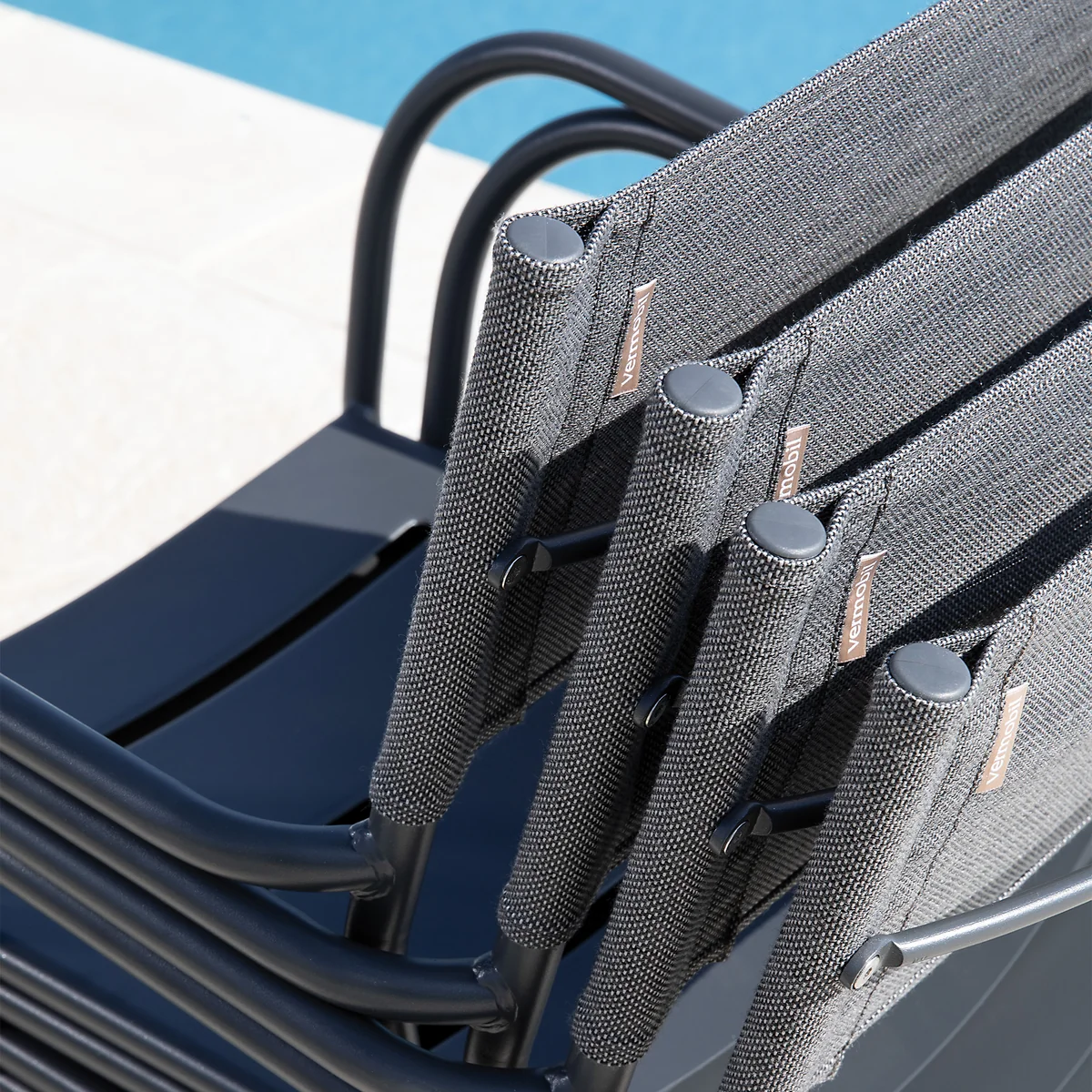 Der Vera Armlehnstuhl vereint klassisch-schlichtes Design mit funktionalem Komfort. Mit seiner harmonischen Linienführung und den sanft geschwungenen Armlehnen lädt er zum entspannten Verweilen ein – ob im heimischen Garten oder im stilvollen Aussenbereich eines Cafés. Das filigrane Gestell aus pulverbeschichtetem, verzinktem Stahl sorgt nicht nur für Stabilität, sondern trotzt auch jedem Wetter.