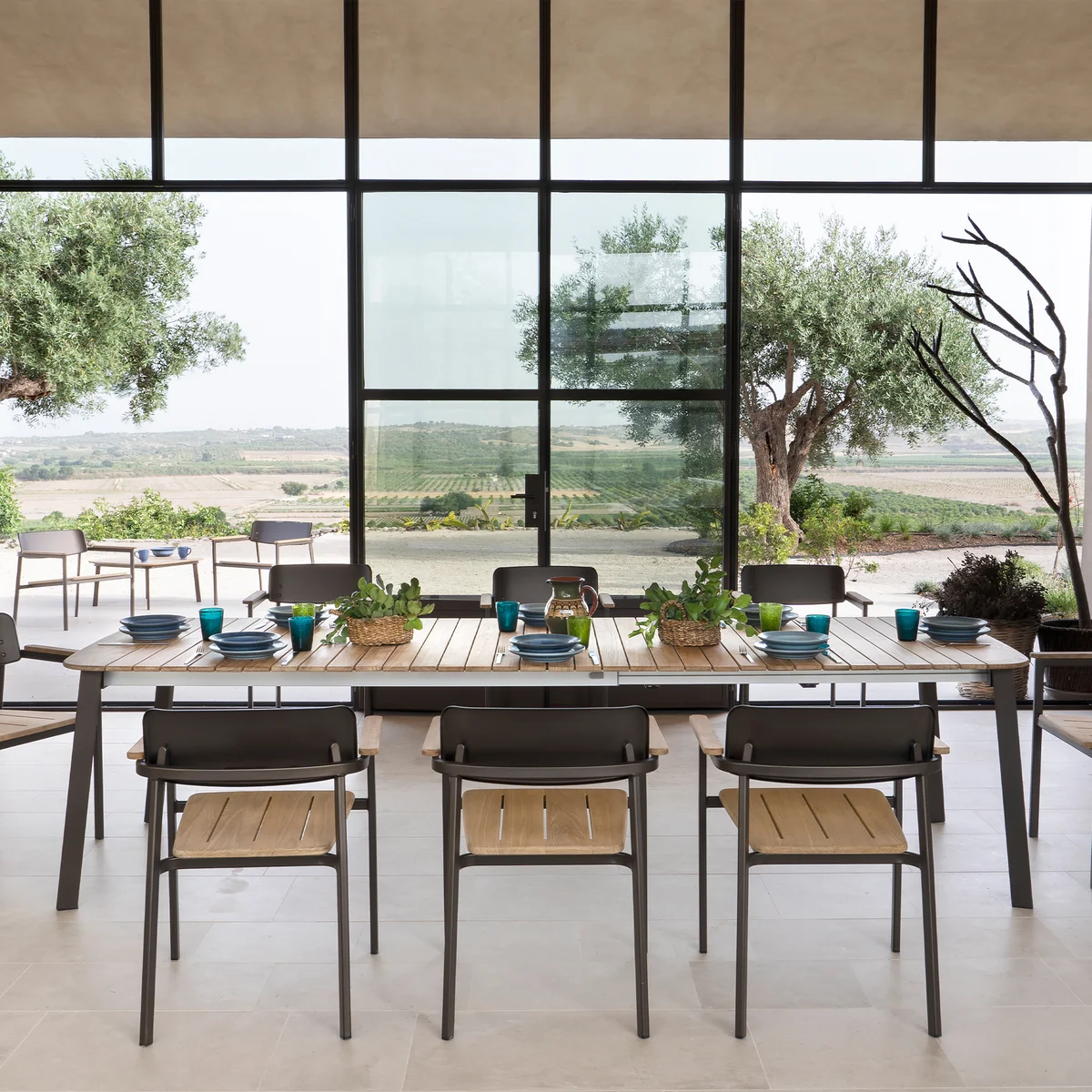 Der Outdoor Tisch des italienischen Herstellers Emu ist Teil der modernen Shine Kollektion des Designers Arik Levy. Der Tisch begeistert mit seinem luftig leichten Gefühl von idealem Komfort und überzeugt mit seiner interessanten Kombination aus Aluminiumbeinen und einer Tischfläche aus 100% FSC zertifiziertem Teakholz.