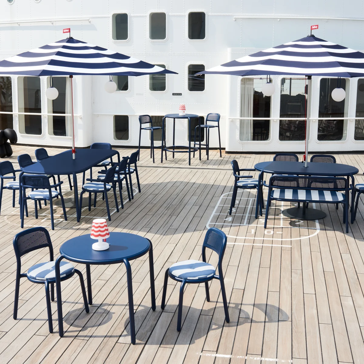 Fatboy wäre nicht Fatboy ohne ein raffiniertes Detail im Design: Toní Tavolo verfügt über eine Öffnung in der Mitte der Tischplatte, die für Sonnenschirme oder Kerzenhalter des finnischen Herstellers geeignet ist. Ein Kerzenhalter für eine Kerze ist im Lieferumfang enthalten.