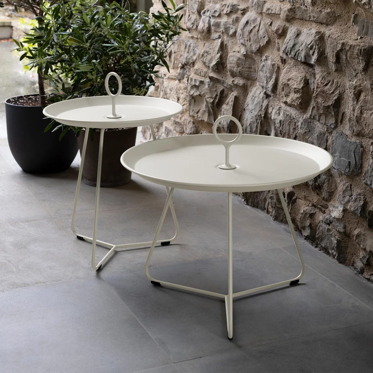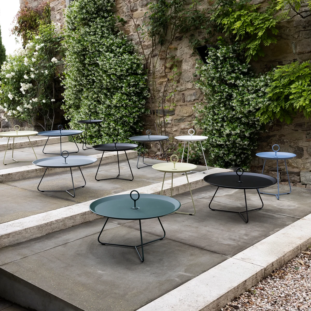 Der EYELET Beistelltisch von HOUE überzeugt durch sein grafisch ansprechendes Design und seine vielseitigen Einsatzmöglichkeiten. Ob als einzelner Blickfang oder in Kombination mit Tischen in unterschiedlichen Grössen und Farben – dieser Tray Table lässt sich mühelos an jeden Ort verschieben, sei es drinnen oder draussen. Dank seines speziellen Drainagesystems bleibt die Tischplatte auch nach einem Regenschauer trocken. Gefertigt aus pulverbeschichtetem Stahl und Aluminium, ist der EYELET Beistelltisch in zwei Grössen (Ø 45 cm und Ø 57,5 cm) erhältlich und bietet mit verschiedenen Farboptionen maximale Gestaltungsfreiheit. Designed by Henrik Pedersen.