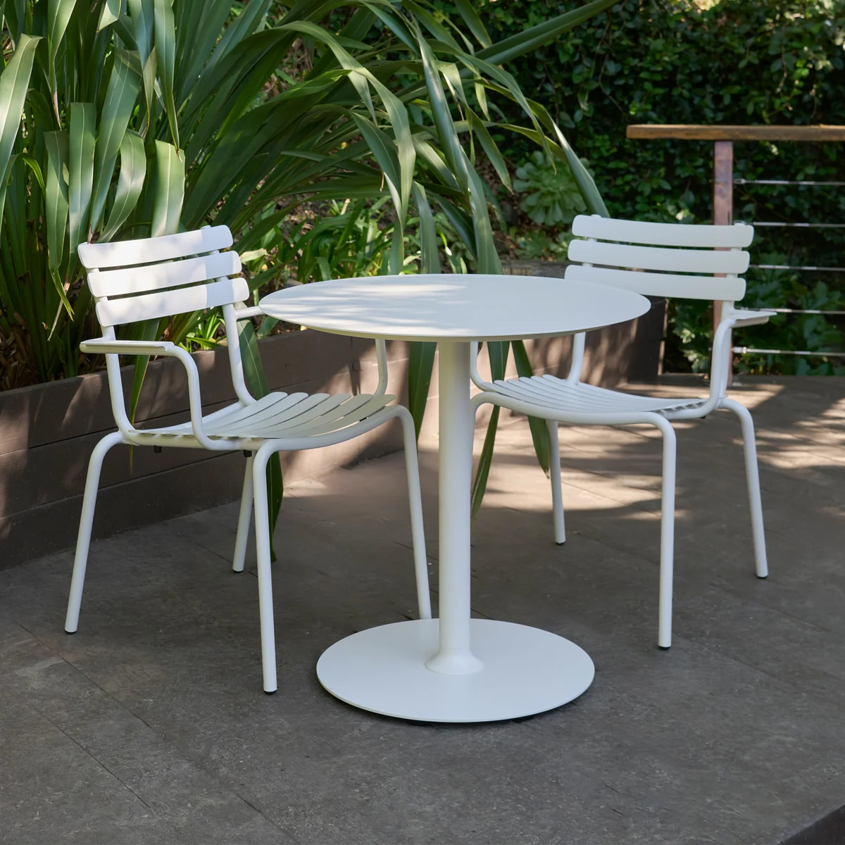 Der Pico Gartentisch von HOUE vereint klare Linienführung mit funktionaler Gestaltung und eignet sich ideal für kleine Aussenbereiche wie Balkone, Terrassen oder kompakte Sitzgruppen im Garten. Die runde Tischplatte mit 74 cm Durchmesser bietet Platz für zwei bis vier Personen und ist aus pulverbeschichtetem Metall gefertigt – wetterfest, pflegeleicht und langlebig. Das grafisch geformte Untergestell sorgt für Stabilität und verleiht dem Tisch zugleich eine moderne, skandinavisch inspirierte Ästhetik.