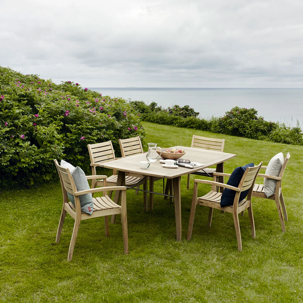 Der Ballare Tisch von Skagerak ist ein stilvoller Gartentisch aus Teakholz, der durch Design und Funktionalität gleichermassen überzeugt. Die minimalistische Gestaltung des Esstisches fügt sich hervorragend in den Garten oder auf dem Balkon ein und kann bestens mit den passenden Ballare Stühlen zu einer einladenden Sitzecke kombiniert werden.