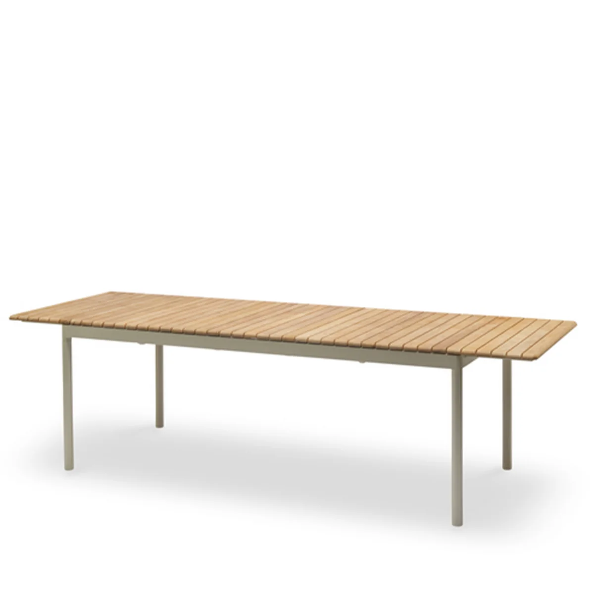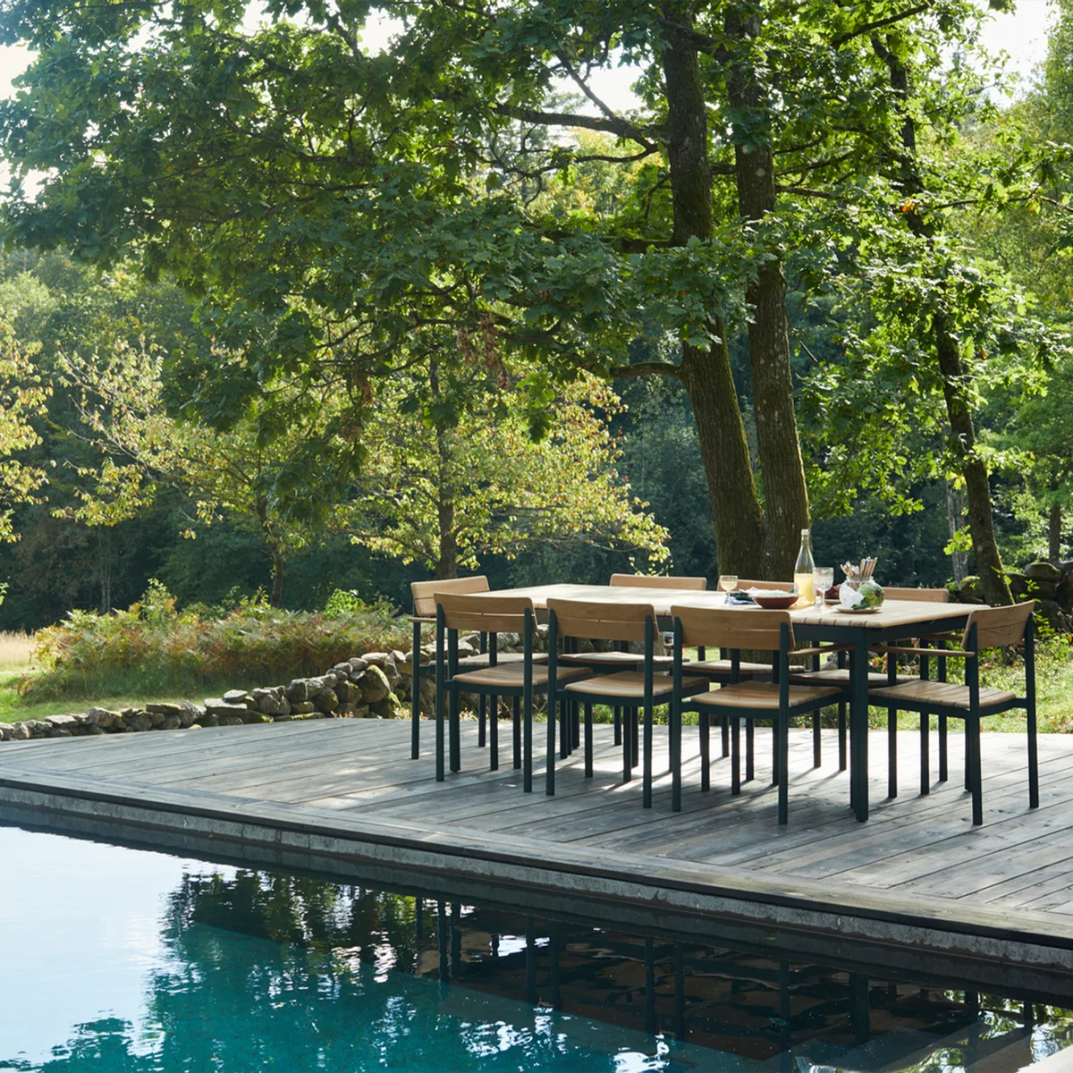 Der Pelagus Tisch von Skagerak wurde vom schwedischen Note Design Studio für Geselligkeit und Komfort geschaffen und besticht mit seinem modernen Ausdruck. Als Teil der Pelagus Kollektion ist der Tisch so konzipiert, dass er ausgeklappt genauso gut aussieht, wie im geschlossenen Format. Die Tischplatte aus Teakholz hat abgerundete Kanten, an welchen sie auf das pulverbeschichtete Aluminiumgestell trifft. Auf Wunsch kann der Tisch via Verlängerungsplatten erweitert werden. Er bietet bequem Platz für sechs bis acht Personen und kann durch die Verlängerungsplatten auf bis zu vier weitere Personen erweitert werden.