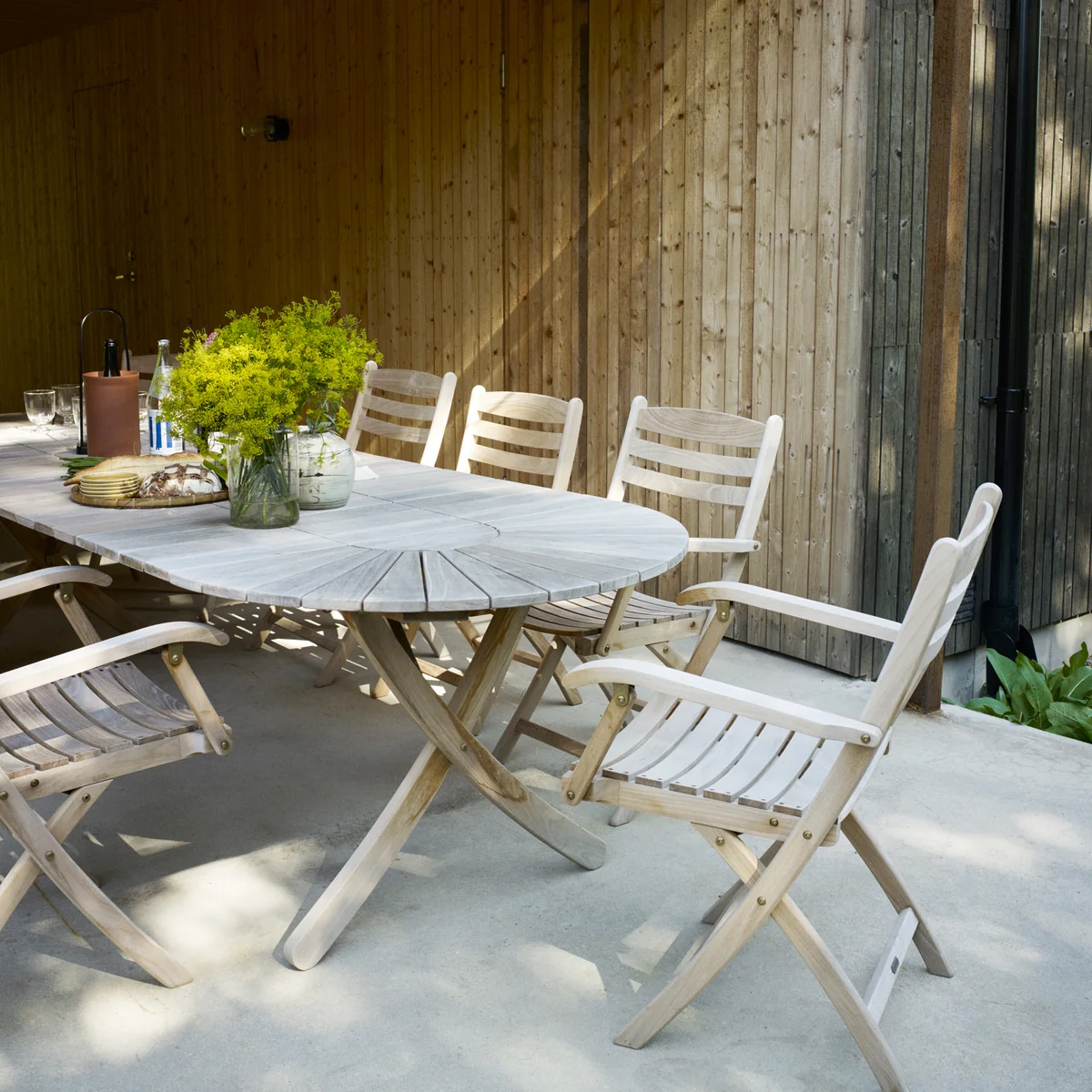 Aus Teakholz gefertigt ist die Selandia Serie von Skagerak besonders widerstandsfähig gegenüber Fäule und Pilzbefall und eignet sich daher ideal für den Outdoorbereich. Um die Schönheit des Holzes zu bewahren empfiehlt es sich, den Teakholz-Gartentisch regelmässig mit Möbel-Öl zu behandeln, um eine Patinierung des Holzes vorzubeugen.