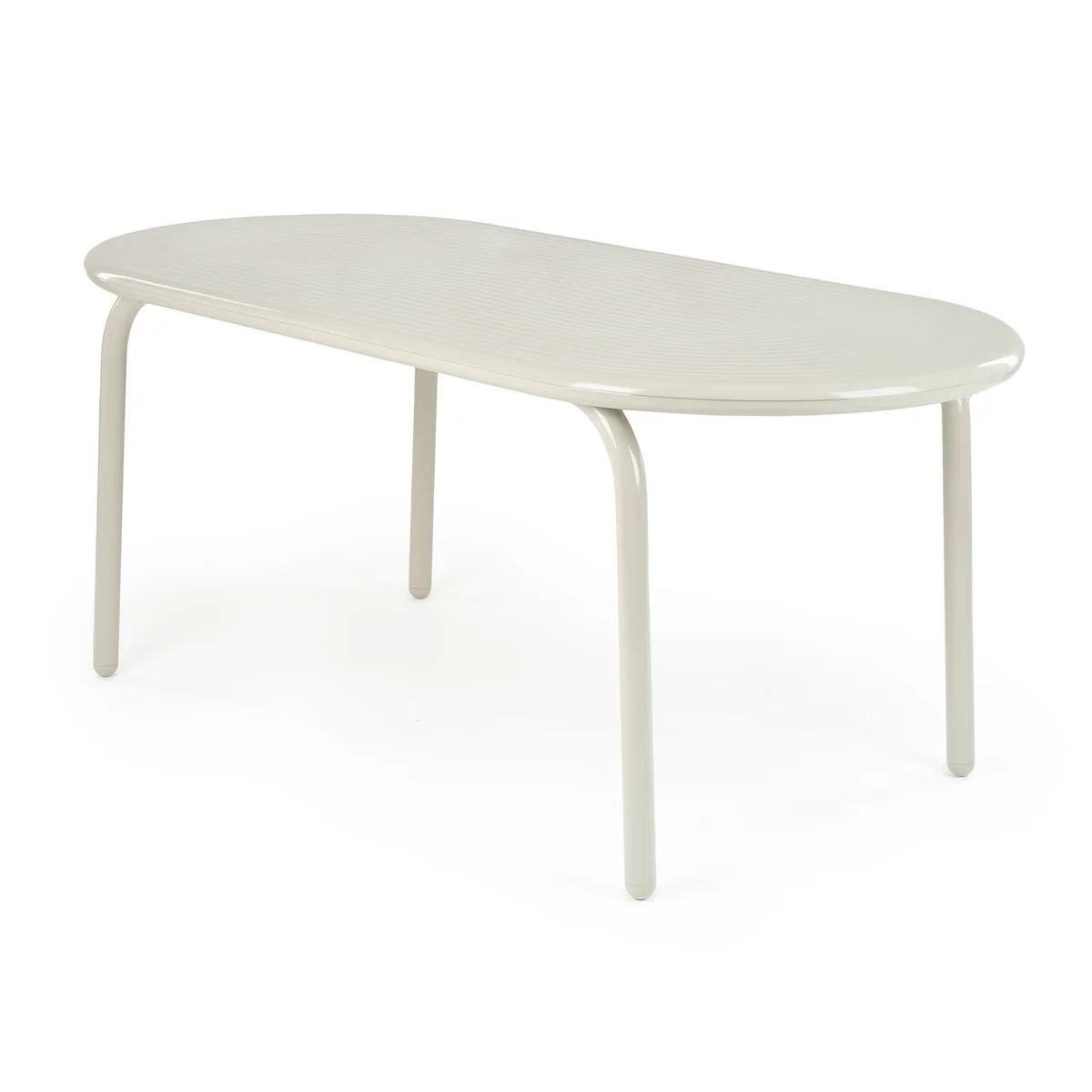 Der Groove Gartentisch von Tom Dixon ist Teil der ersten Outdoor-Kollektion und besticht durch ein markantes, art-déco-inspiriertes Design mit erhobenen Linien. Hergestellt aus hochwertigem Aluminium unter Einsatz moderner Fertigungstechniken, überzeugt dieser Tisch durch aussergewöhnliche Robustheit und Langlebigkeit im Aussenbereich. Die pulverbeschichtete Oberfläche ist lösungsmittelfrei und VOC-frei, wodurch der Tisch optimal vor Witterungseinflüssen geschützt ist.