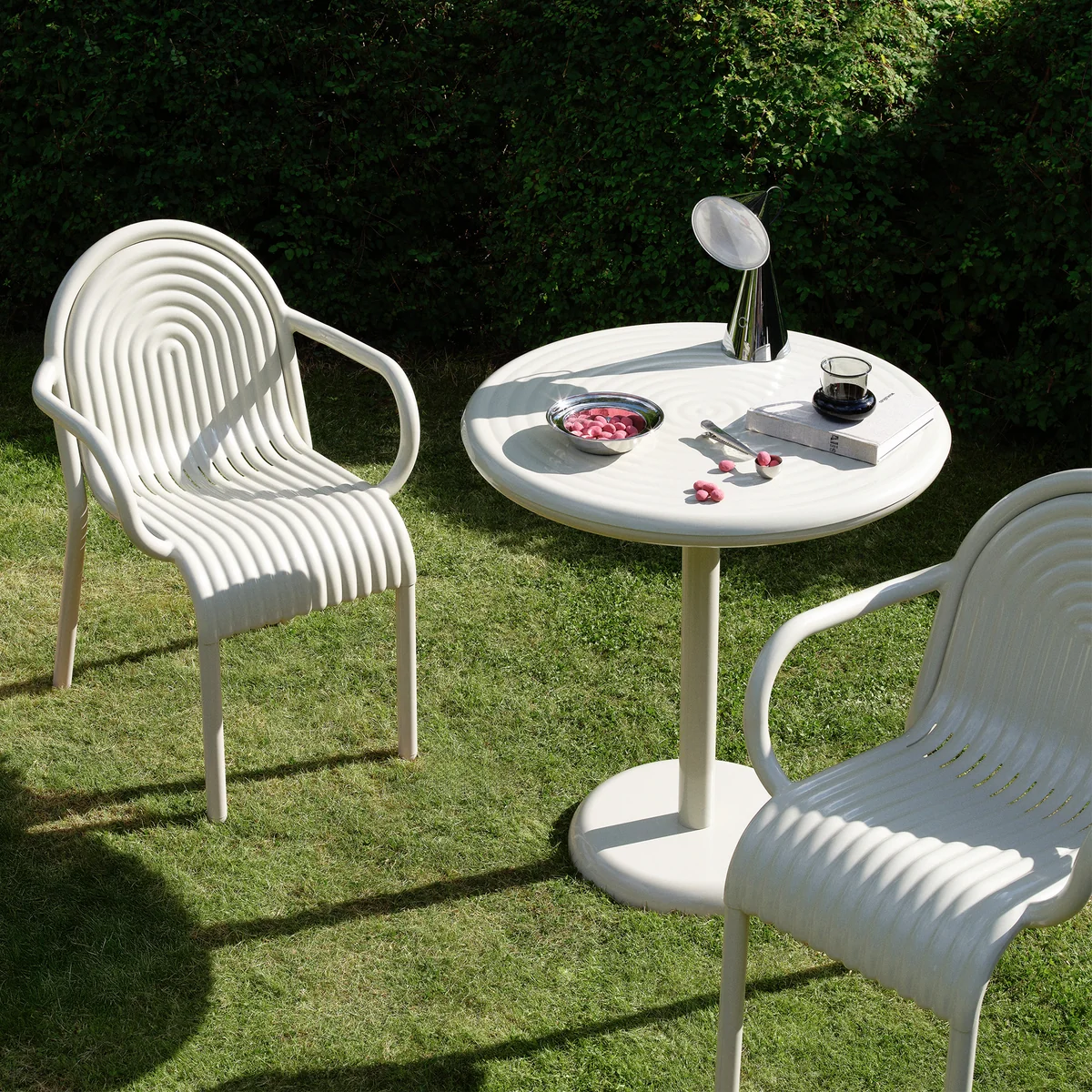Der Groove Round Garden Gartentisch ist ein Meisterwerk der Outdoor-Möbelgestaltung, das Kunst und Funktionalität miteinander vereint. Nach mehr als 10 Jahren Entwicklung bietet dieser Tisch eine elegante Lösung für jedes Aussenumfeld. Gefertigt aus robustem Aluminium, garantiert er Langlebigkeit und Korrosionsbeständigkeit, während die markanten, art-deco inspirierten Rillen dem Design einen einzigartigen Charme verleihen. In zeitlosen Farbtönen lässt sich der Tisch mühelos in jedes Gartenambiente integrieren.