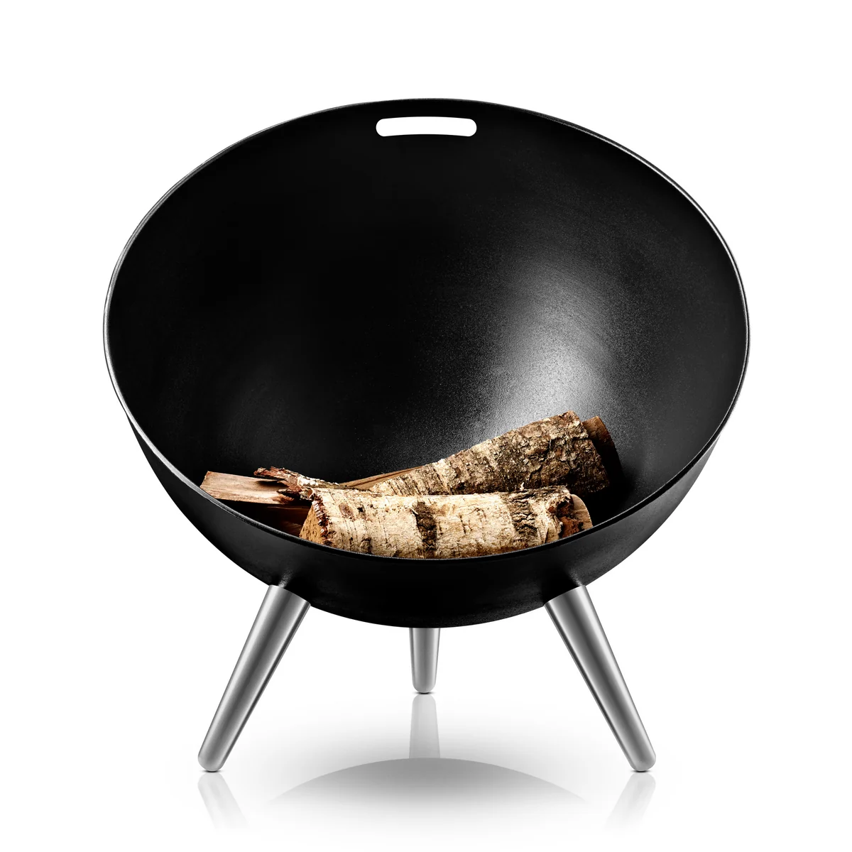 Eva Solo stellt den FireGlobe aus emailliertem Stahl und Aluminium her. Der dänische Hersteller hat die grosse Design-Feuerschale mit einem Griff ausgestattet, mit dem er sich einfach bewegen lässt. Ein Rost am Boden sorgt für gute Ventilation.
