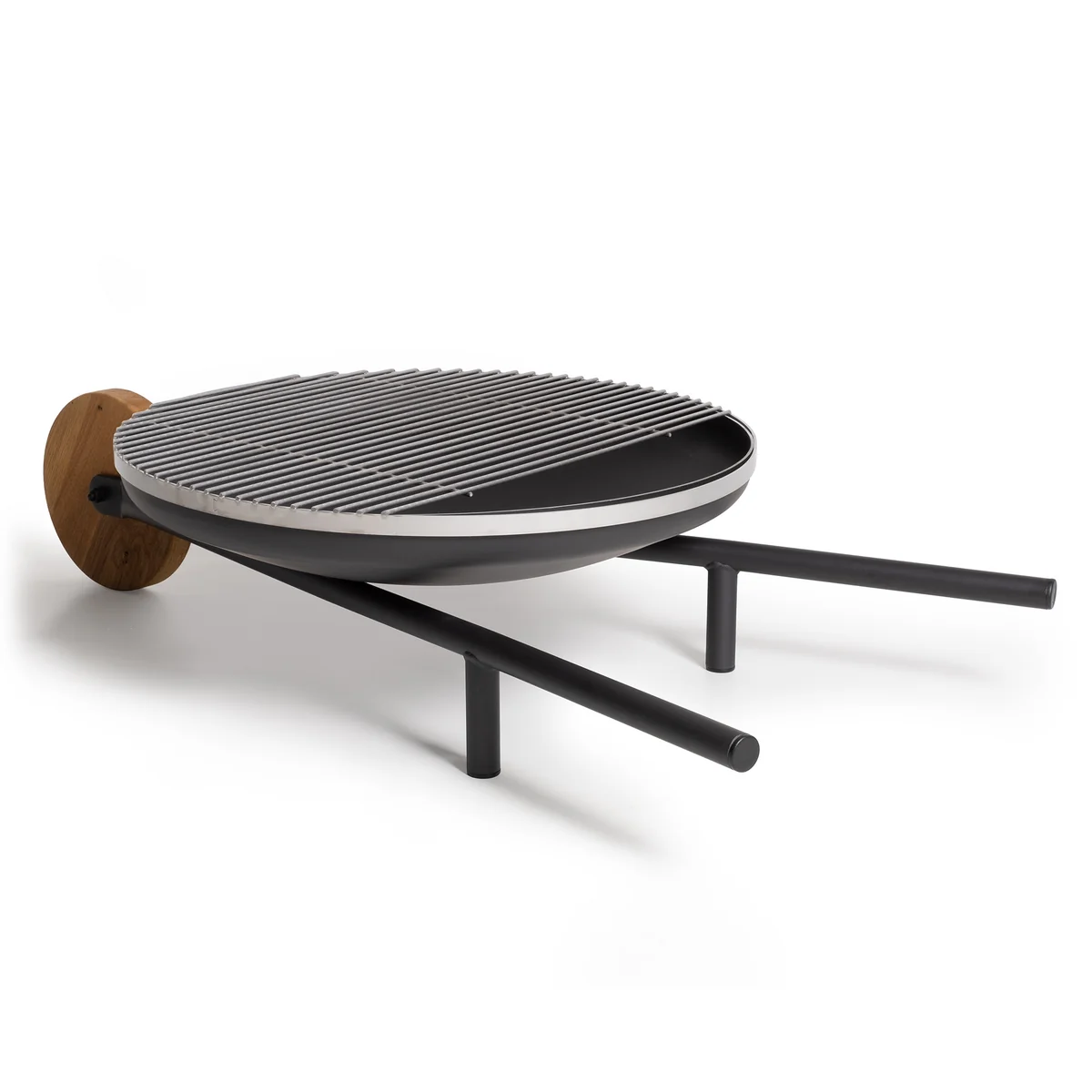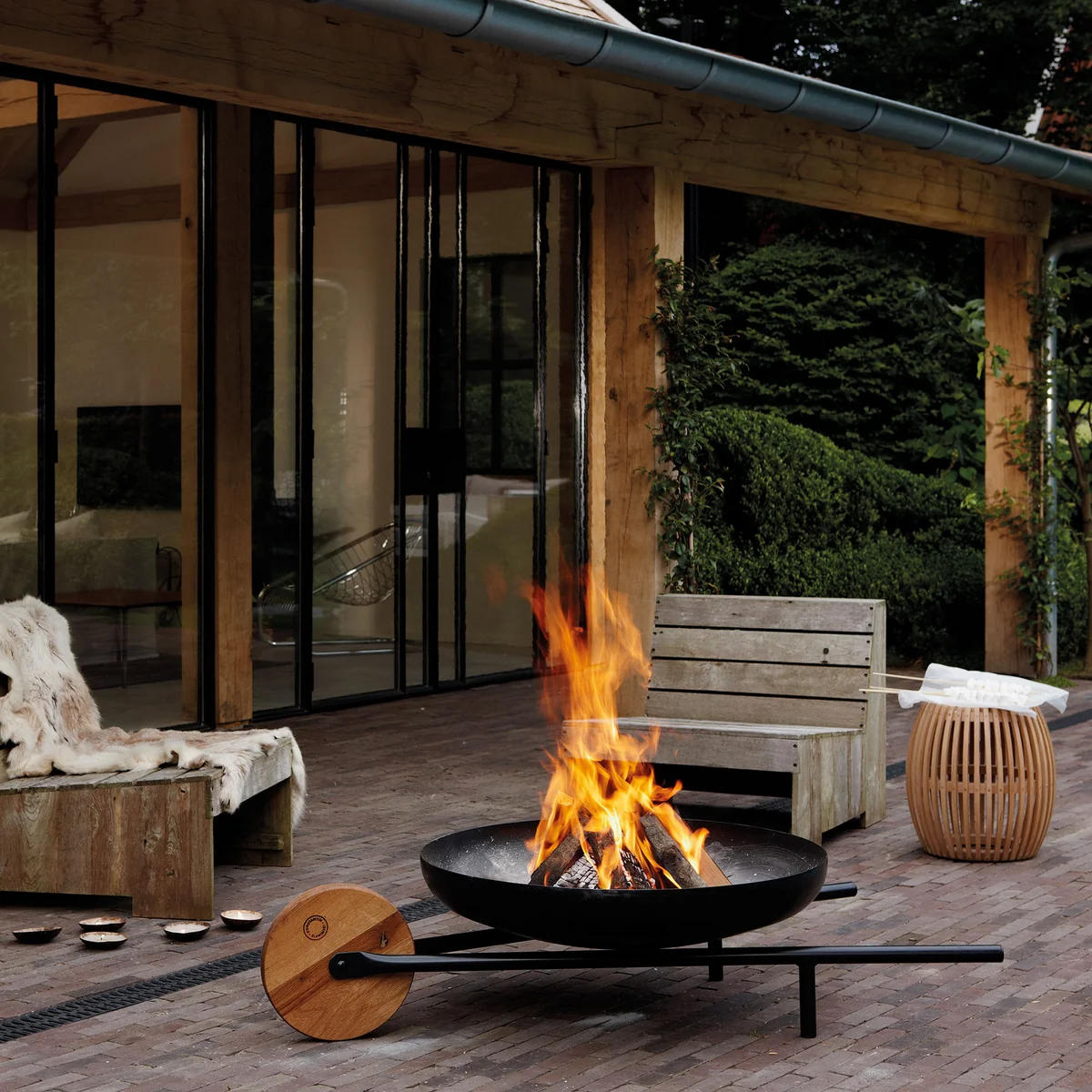 Die massive Feuerschale biete durch ihre hochwertige Verarbeitung eine hohe Stabilität sowie Hitzebeständigkeit. Somit bleibt die Schale den ganzen Abend heiss und eignet sich daher auch für längere Grillsessions. Die Barrow Feuerschale von ding3000 erinnert nicht nur an die Form einer Schubkarre, sie besitzt auch deren Funktion und kann dank des Rads einfach in den Garten oder auf die Terrasse geschoben werden. Das Rad sorgt für einen stilvollen Materialmix zwischen dem kühlen Stahlblech und dem warmen Holz. Damit ist der Grill von Konstantin Slawinski nicht nur ein funktionaler Begleiter für den Garten, sondern setzt zudem auch ästhetische Akzente im Aussenbereich.