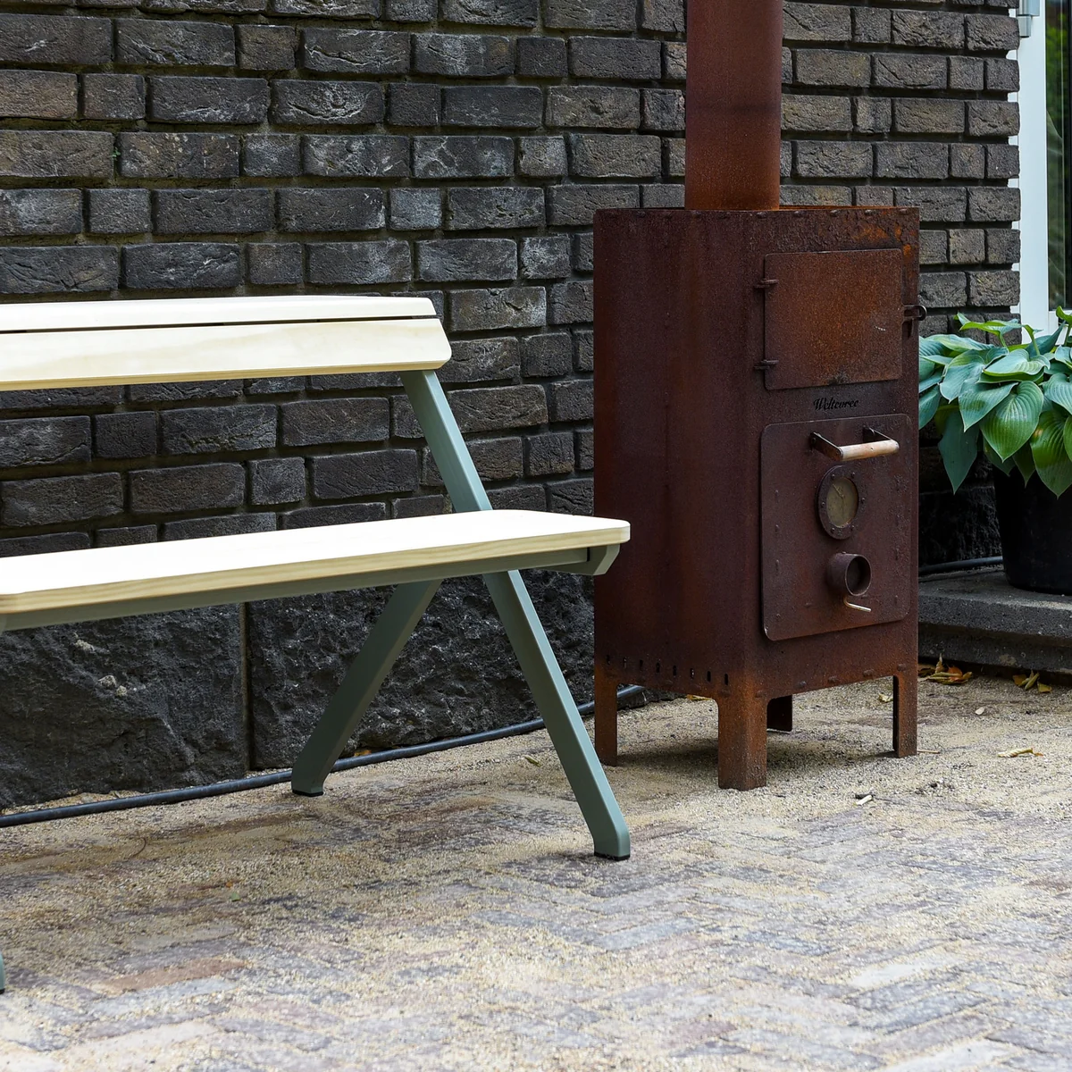Der Outdoor Stahlofen von Weltevree wurde von Dick van Hoff entworfen, der eines Abends zwischen einem Grill und einem Feuerkorb sass und sich dachte: Diese beiden Dinge lassen sich auch kombinieren.