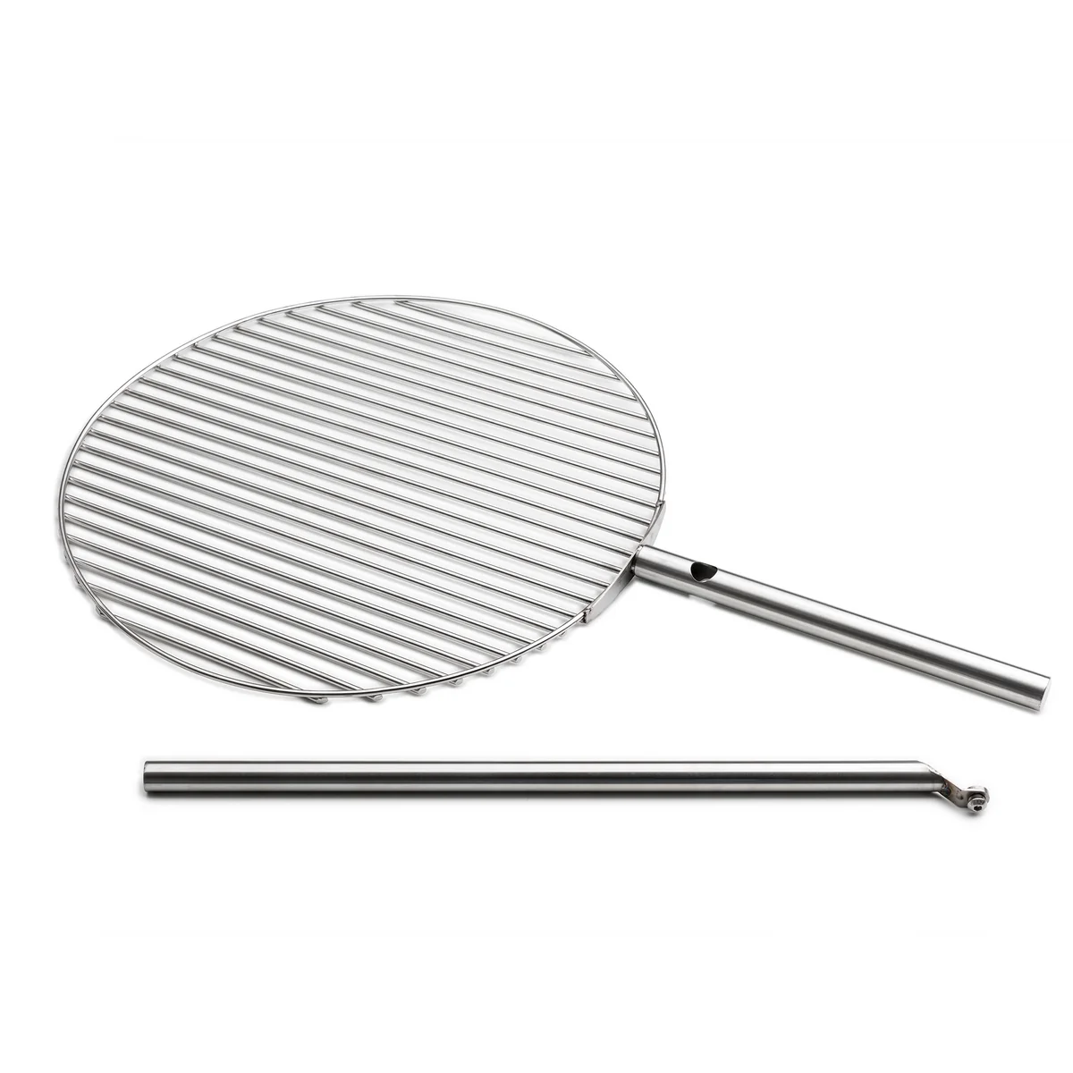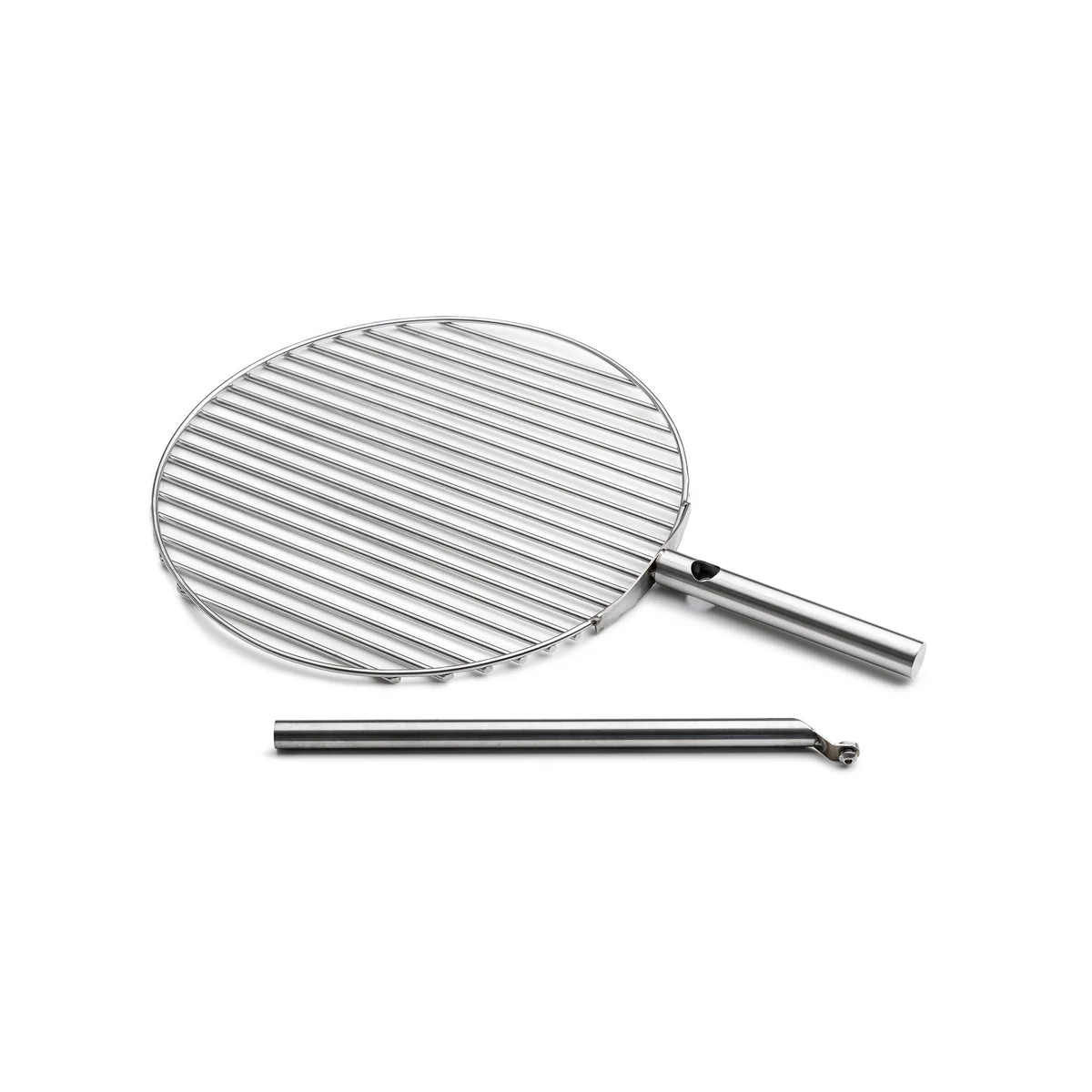 Das Triple Grillrost ist eines der passenden Zubehörteile zur Triple Feuerschale von höfats. Dank des Rosts aus Edelstahl lässt sich die rustikale Feuerschale im Handumdrehen in einen Grill verwandeln. Hierfür wird es auf die dafür vorgesehene Stange gesetzt, an der sich das Rost stufenlos in der Höhe verstellen und einfach schwenken lässt. So ist das Rost flexibel in der Anwendung. Je nach Bedarf kann das Grillgut so scharf angebraten, leicht gebrutzelt oder bloss warmgehalten werden.