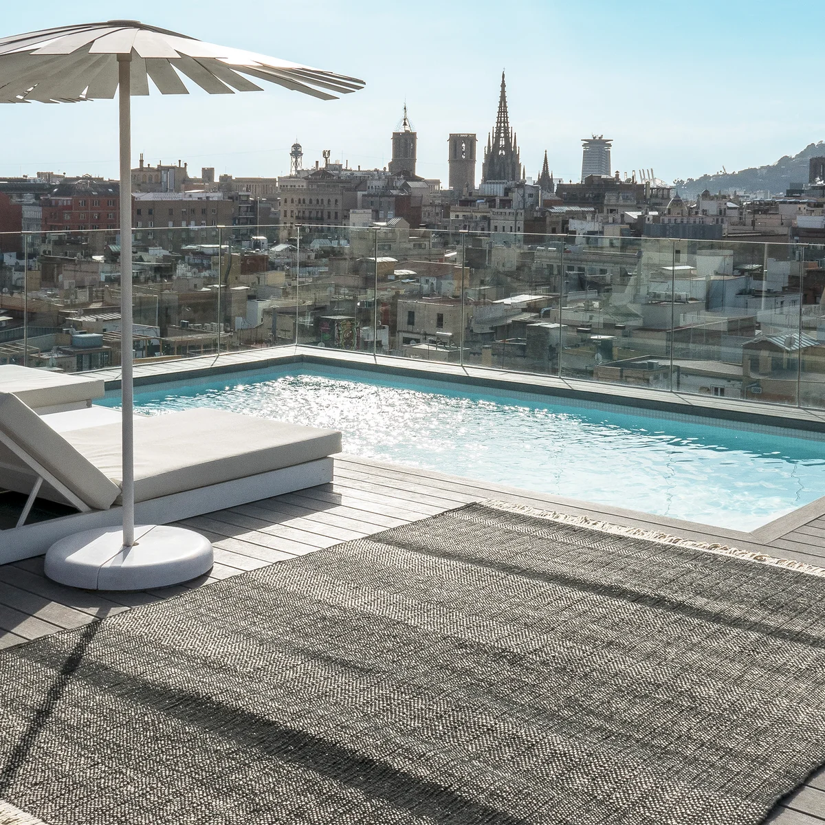Der Teppich ist für den Innen- und Aussenbereich geeignet, wird aus recyceltem PET hergestellt und ist in verschiedenen Varianten und Grössen erhältlich. So ist der Teppich nicht nur robust und wetterfest, sondern auch umweltfreundlich und nachhaltig produziert. Das Material wird durch den Prozess der Rückgewinnung und Wiederverwendung von Polyethylen (PET)-Abfällen hergestellt, aus denen eine leichte Faser gewonnen wird. Die Umweltvorteile dieses Verfahrens sind zahllos: Es reduziert die Umweltbelastung, vermeidet die Verwendung nicht erneuerbarer natürlicher Ressourcen und senkt den Energieverbrauch. Recyceltes PET weist eine hohe Abriebfestigkeit und gute thermische Eigenschaften auf, was es zu einer perfekten Faser für Outdoor-Teppiche macht.