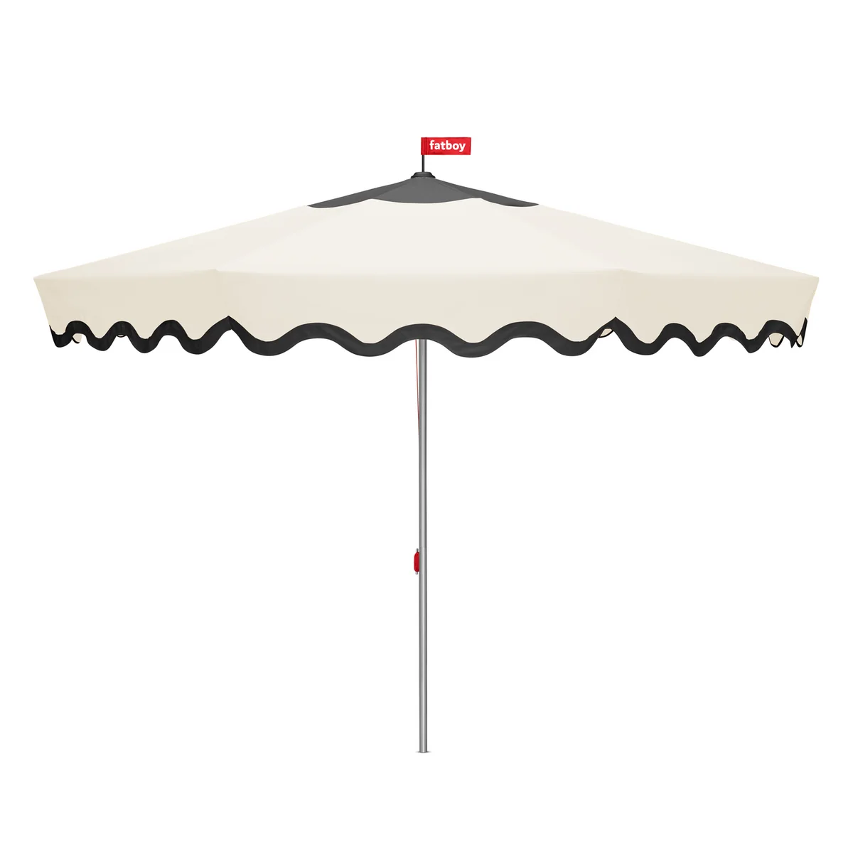Mit einem grosszügigen Durchmesser von 3,5 Metern spendet das farbbeständige Polyestergewebe angenehmen Schatten und bietet optimalen Schutz vor UV-Strahlen. Zudem ist das Material wasser- und schmutzabweisend. Der stabile Aluminiumrahmen sorgt für sicheren Stand, während die mitgelieferte Schutzhülle und die markante Fatboy-Flagge das Design abrunden.