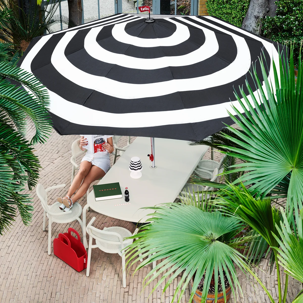 Das Stripesol Set Sonnenschirm + Ständer von Fatboy lässt den Aussenbereich zu einem Ort der Entspannung und Erholung werden! Dieser luxuriöse Sonnenschirm schützt vor den stärksten Sonnenstrahlen und bietet dabei ein einzigartiges Design. Der robuste Fuss sorgt für Stabilität und das raffinierte Zugsystem ermöglicht ein einfaches Auf- und Zuklappen des Schirms.