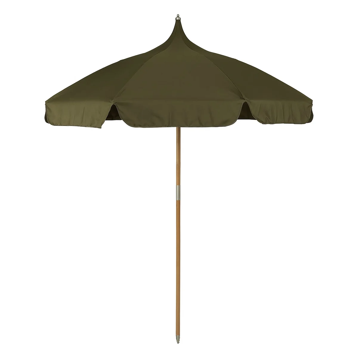 Der Lull Sonnenschirm von Ferm Living bietet das perfekte Schutzschild für die unerbittliche Hitze des Sommers. Der Sonnenschirm lädt zu entspannten und gelassenen Momenten im Schatten ein und ist ideal für Gartenpicknicks am Strand und überall dort, wo Schutz vor der Sonne benötigt wird. Mit der romantischen Pagodenform und dem Holzstiel bietet der Schirm eine grosszügige Fläche für gemeinsame Ausflüge. Der Lull Umbrella bietet UV30+ Schutz und wird in einer praktischen, passenden Tasche geliefert, um den Transport zu erleichtern.