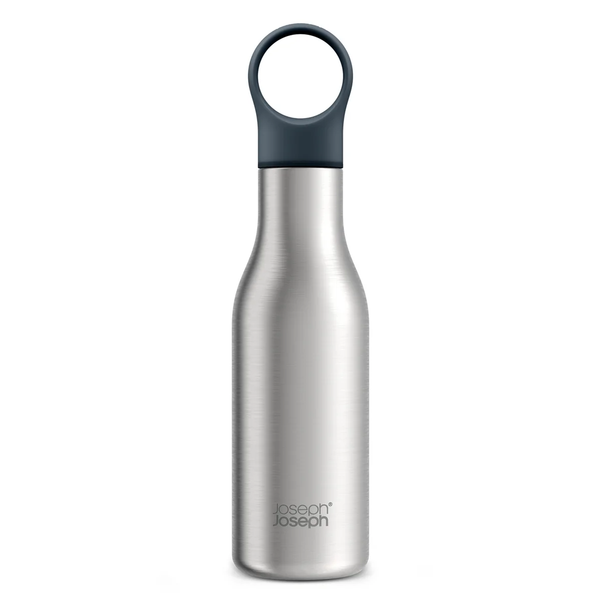 Joseph Joseph verleiht mit der Loop Trinkflasche einer herkömmlichen Trinkflaschen einen neuen Look. Die vakuumisolierte Flasche fasst 500 ml und eignet sich für warme und kalte Getränke. Der Verschluss mit Schlaufengriff sorgt nicht nur für einen einfachen Transport. Durch die Schlaufe kann der Verschluss zur einfachen Aufbewahrung auch einfach über die Flasche gestülpt werden.
