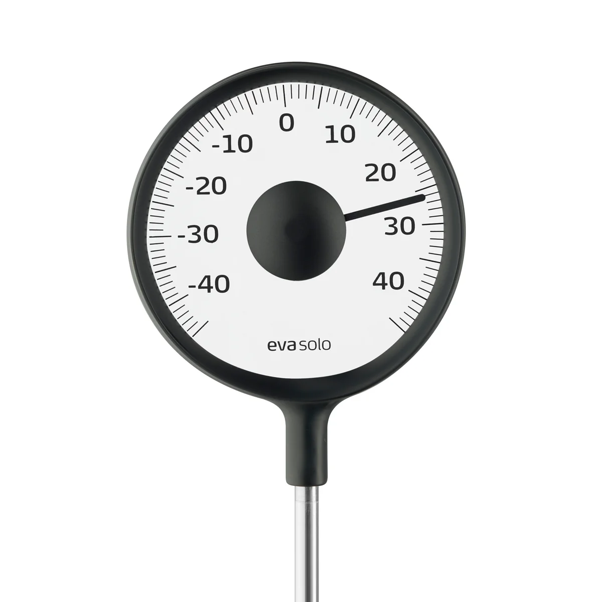 Das Aussenthermometer von Eva Solo ermöglicht es, mit einem Blick auf die Aussenseite der Fensterscheibe zu erfahren, wie warm es ist und wie sich das Wetter entwickelt. Das Thermometer kann ganz einfach abgelesen und mithilfe eines doppelseitigen Klebebands und einer Halterung an der Scheibe befestigt werden. Bei Bedarf, kann die Halterung ganz einfach entfernt werden.