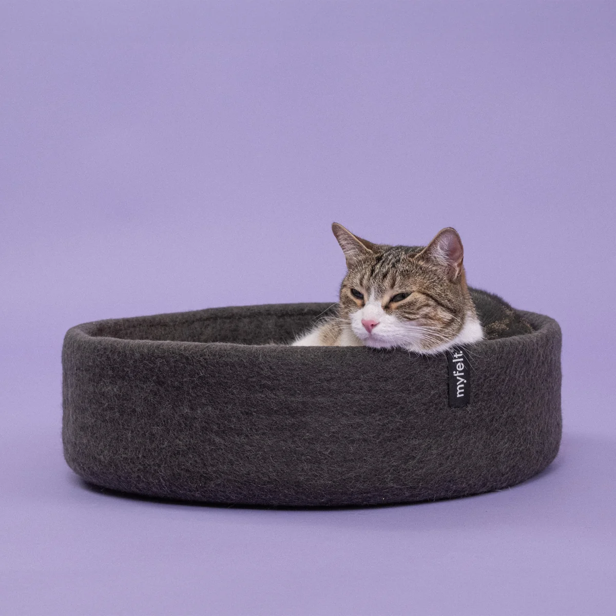 Im handgefertigten Kuno Katzenkorb aus reiner Schurwolle von myfelt fühlen sich Katzen jeder Grösse wohl und geborgen. Das nachhaltige Material ist durch das natürliche Wollfett pflegeleicht, antibakteriell und temperaturregulierend. Dadurch bleibt der Katzenkorb im Winter warm und behaglich, während er im Sommer angenehm kühl ist.