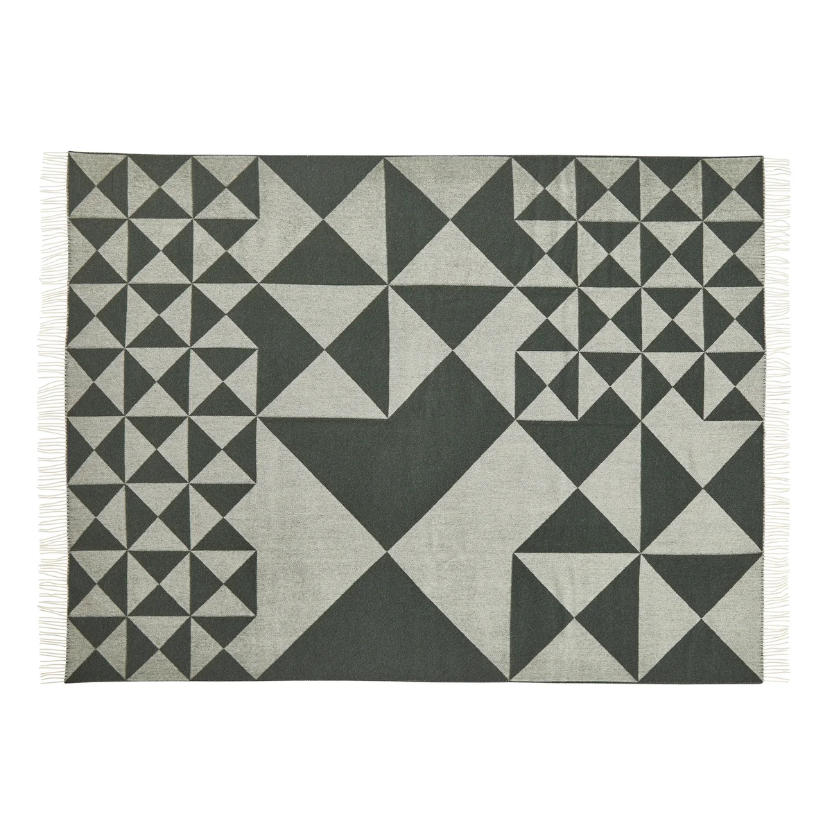 Die meisten Menschen kennen Verner Panton als Möbeldesigner. Doch das ist zu kurz gedacht - schliesslich hat der Däne auch zahlreiche Heimtextilien und Textilmuster (bspw. für Kvadrat und Bayer) erschaffen, die seinen Möbelentwürfen in nichts nachstehen. Die Optik seiner Mirror Throw besteht aus Dreiecken in zwei Farben, die sich in unterschiedlicher Grösse und Anordnung zu geometrischen Mustern formen.