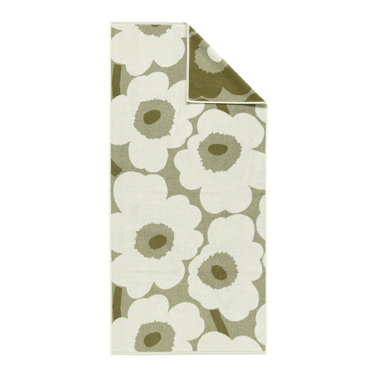 Das Unikko Muster von Maija Isola ist eines der bekanntesten Designs von Marimekko. In unterschiedlichen Farben ziert der florale Print nun auch die Badezimmer-Tücher in unterschiedlichen Grössen.