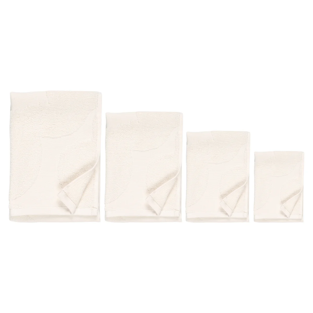 Das Unikko Solid Handtuch-Set von Marimekko vereint stilvolles Design mit hochwertiger Verarbeitung. Das Set umfasst ein Badetuch, ein Handtuch, ein Gästetuch und ein Mini-Handtuch, alle gefertigt aus weichem Bio-Baumwollfrottee. Das eingeprägte Unikko-Muster verleiht den Handtüchern eine elegante Struktur, während die Rückseite glatt gehalten ist, um ein angenehmes Gefühl auf der Haut zu bieten.