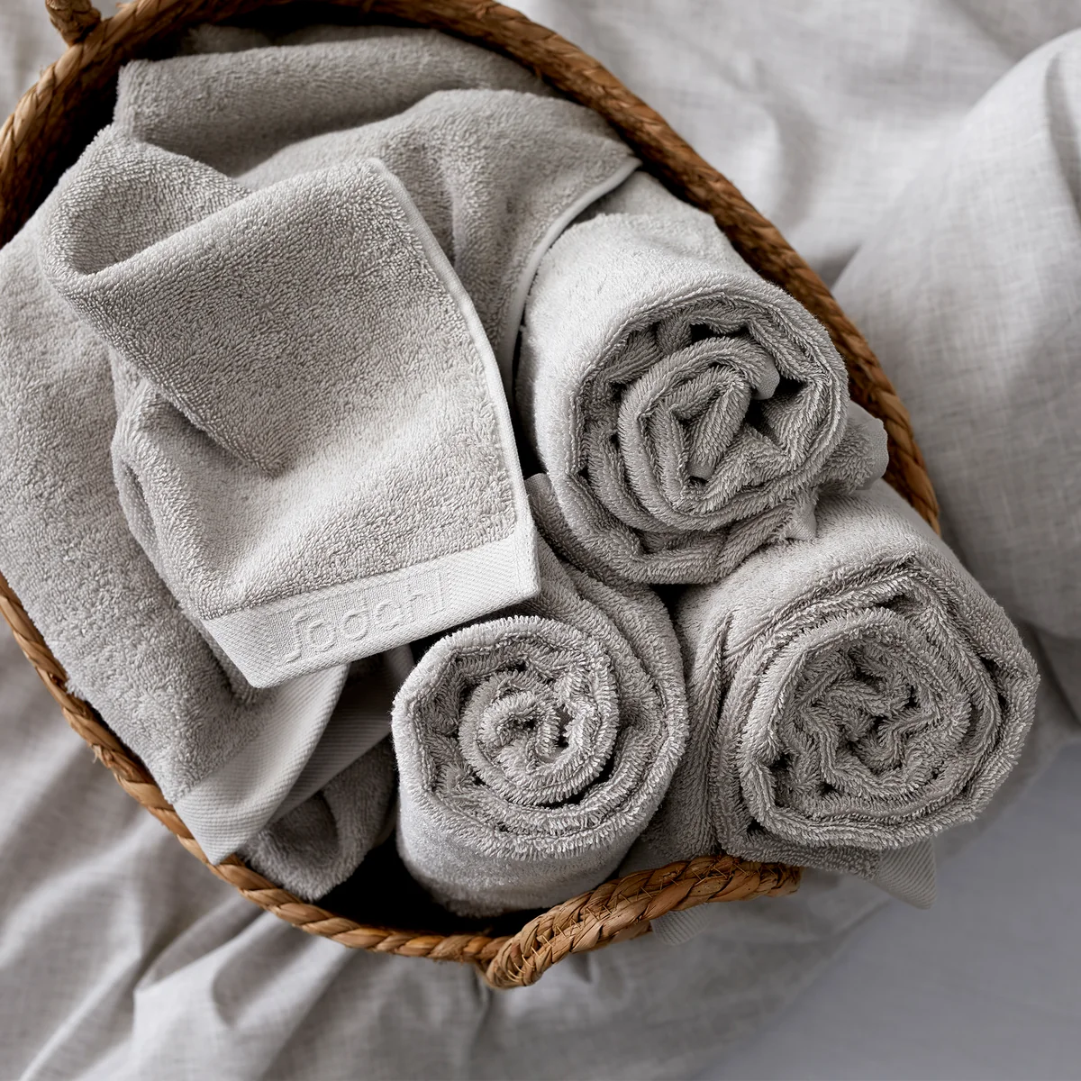 Das weiche Baumwollhandtuch ist eingefasst und wird von dem eleganten Södahl Logo geschmückt, das sich als Schriftzug auf dem Handtuch wiederfindet.