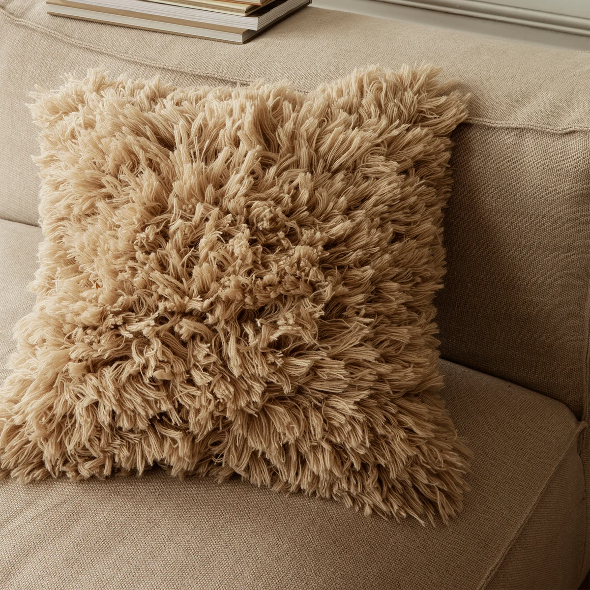 Ferm Living - Meadow Hochflor Kissen, 50 x 50 cm, light sand