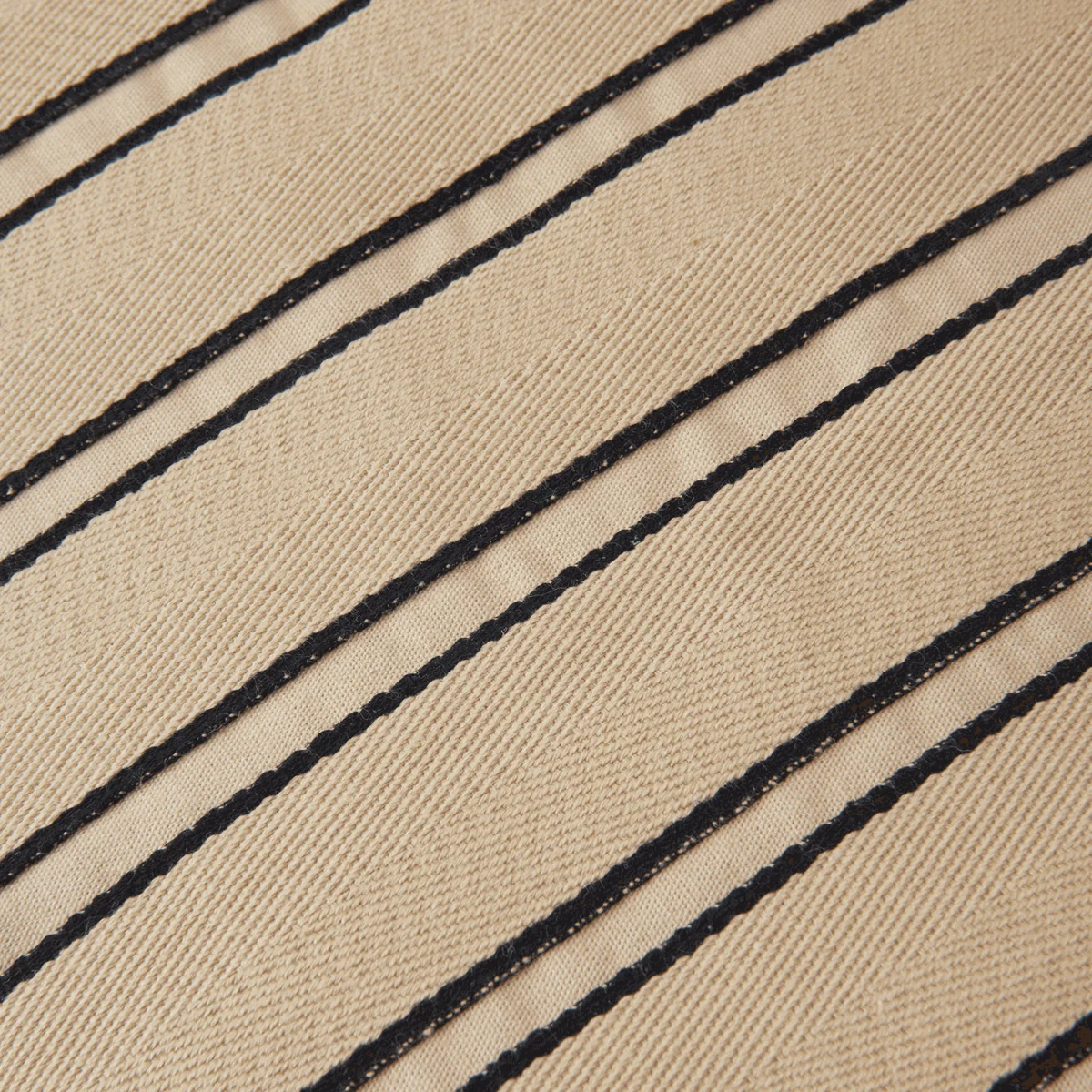 Die Twill Nackenrolle von Ferm Living bringt dezente Struktur und natürliche Eleganz in Einklang. Ihre längliche Form wird durch eine Abfolge gewebter Baumwollbänder mit feinem Fischgratmuster betont. Das Ergebnis ist ein ruhiges, texturiertes Erscheinungsbild, das durch Zurückhaltung wirkt. Die detailreiche Verarbeitung und die spürbare Qualität machen die Nackenrolle zu einem funktionalen Designobjekt – sanft in der Anmutung, klar in der Aussage.