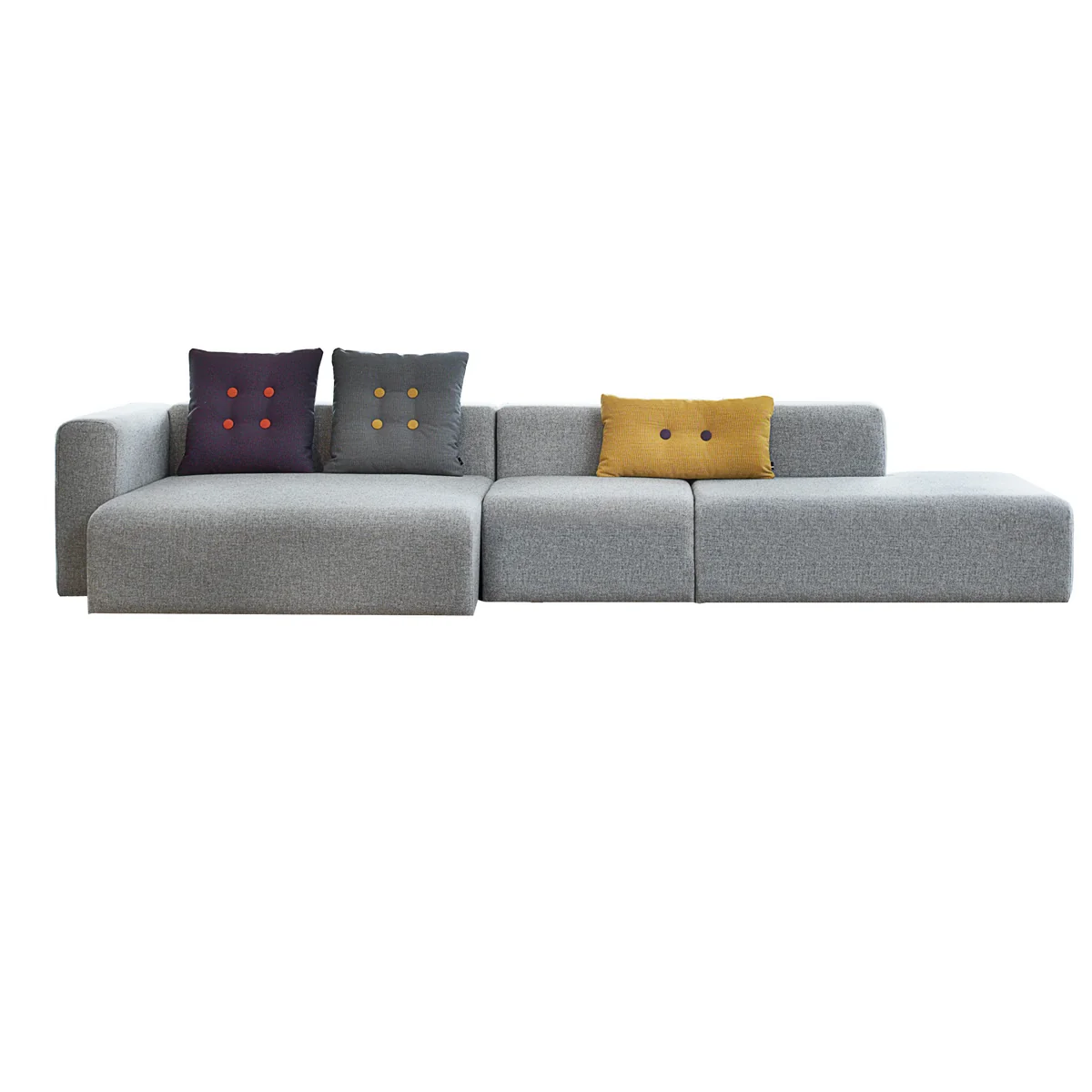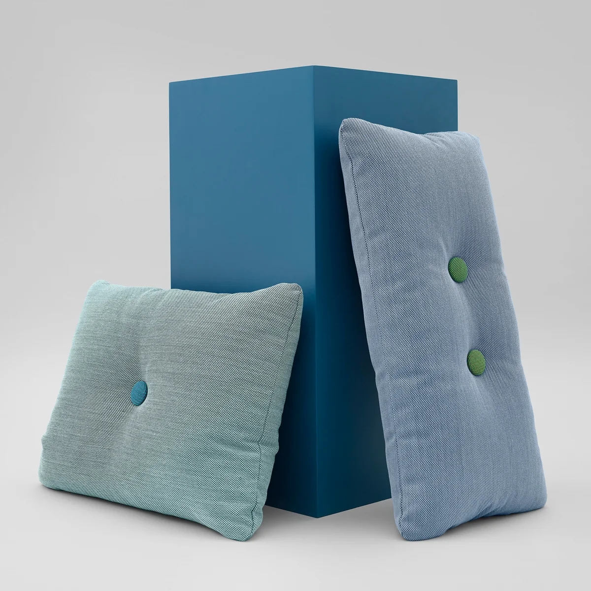 Das HAY Dot Kissen ist in zwei Grössen, mit einem oder mehreren Knöpfen und in einer Vielzahl verschiedener Farben und Stoffe erhältlich. Dabei setzten die Punkte (engl. "Dots"), die dem Wohntextil seinen Namen geben, farbige Akzente ohne dabei den Komfort des Kissens zu beeinträchtigen.