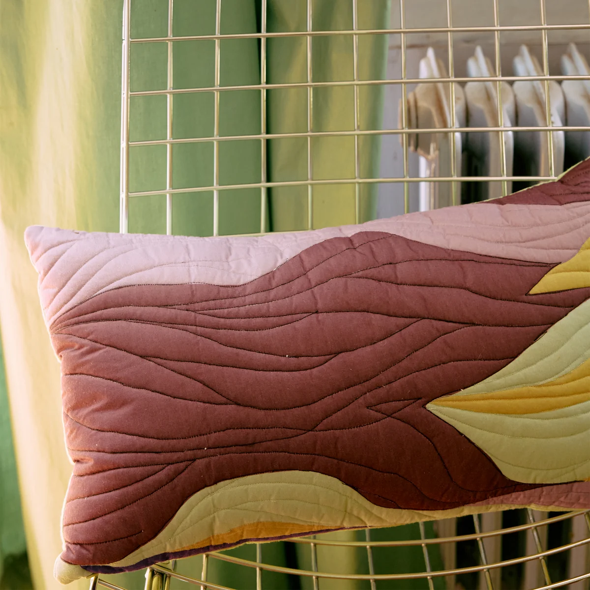 - Samtkissen mit fliessendem Stickmuster und sanften Farbverläufen