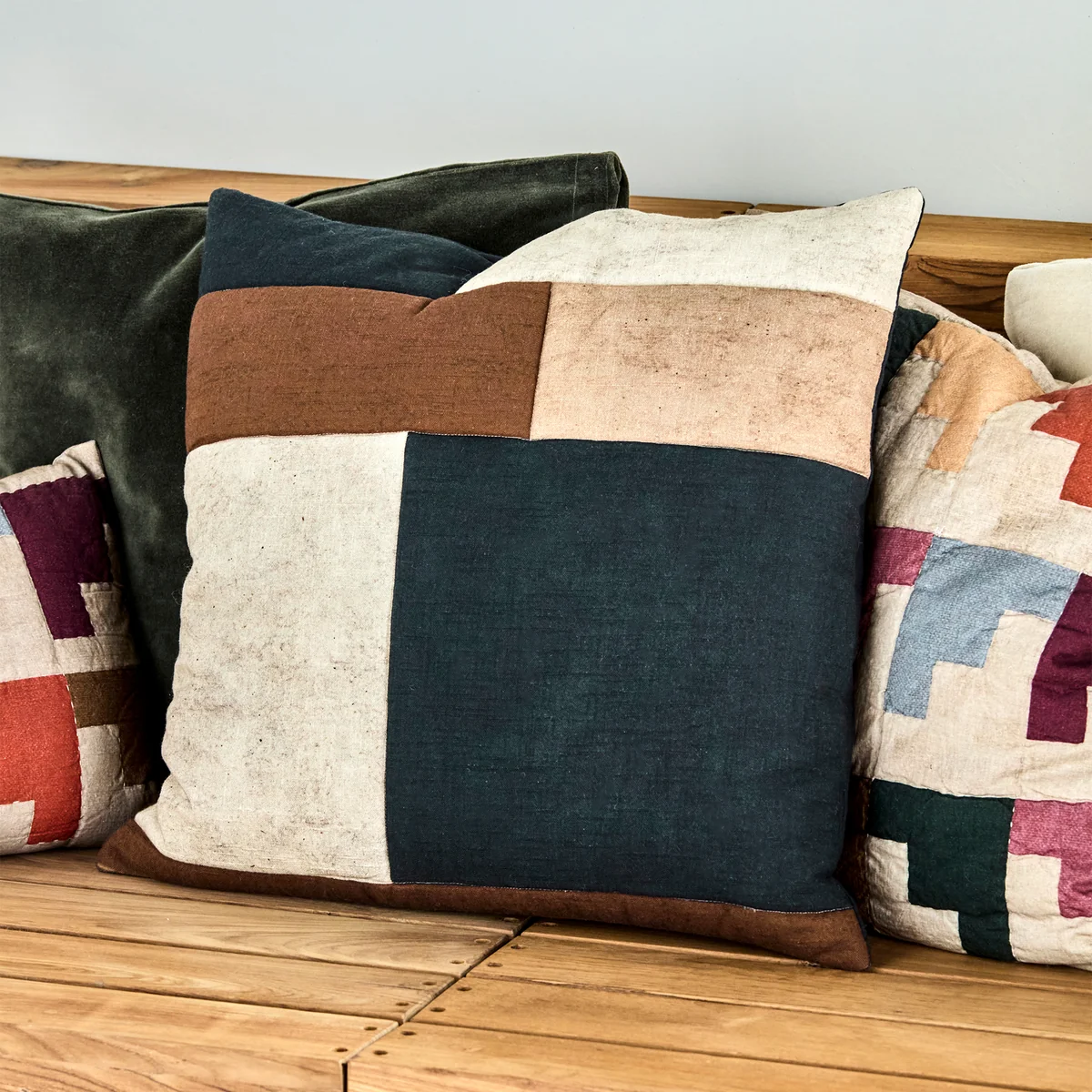House Doctor - Patch Kissenbezug, 50 x 50 cm, schwarz / sand / braun