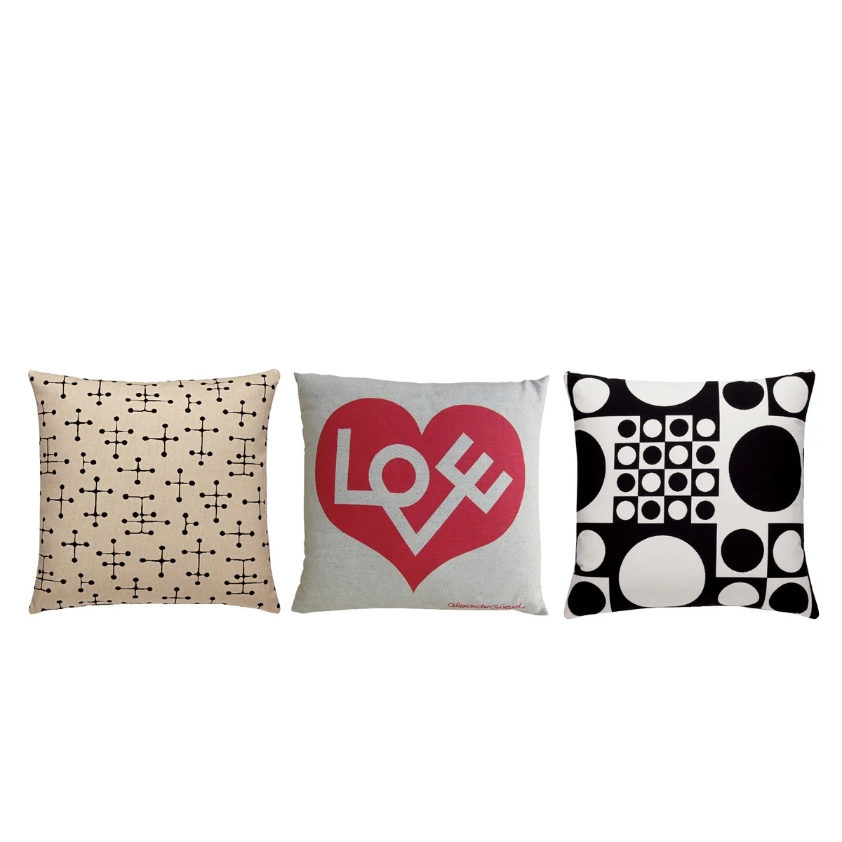 Als Textildesigner, Architekt, Interieurdesigner und Sammler entwickelte Alexander Girard von 1952 bis 1975 in Leitungsposition der Textilabteilung bei Herman Miller Materialien und Muster, die mit den innovativsten Möbeln seiner Zeit konform gehen. Zu jener Zeit entstand auch der Entwurf zum Love Kissen, das heute nach Originalentwurf von Alexander Girard von Vitra produziert wird.